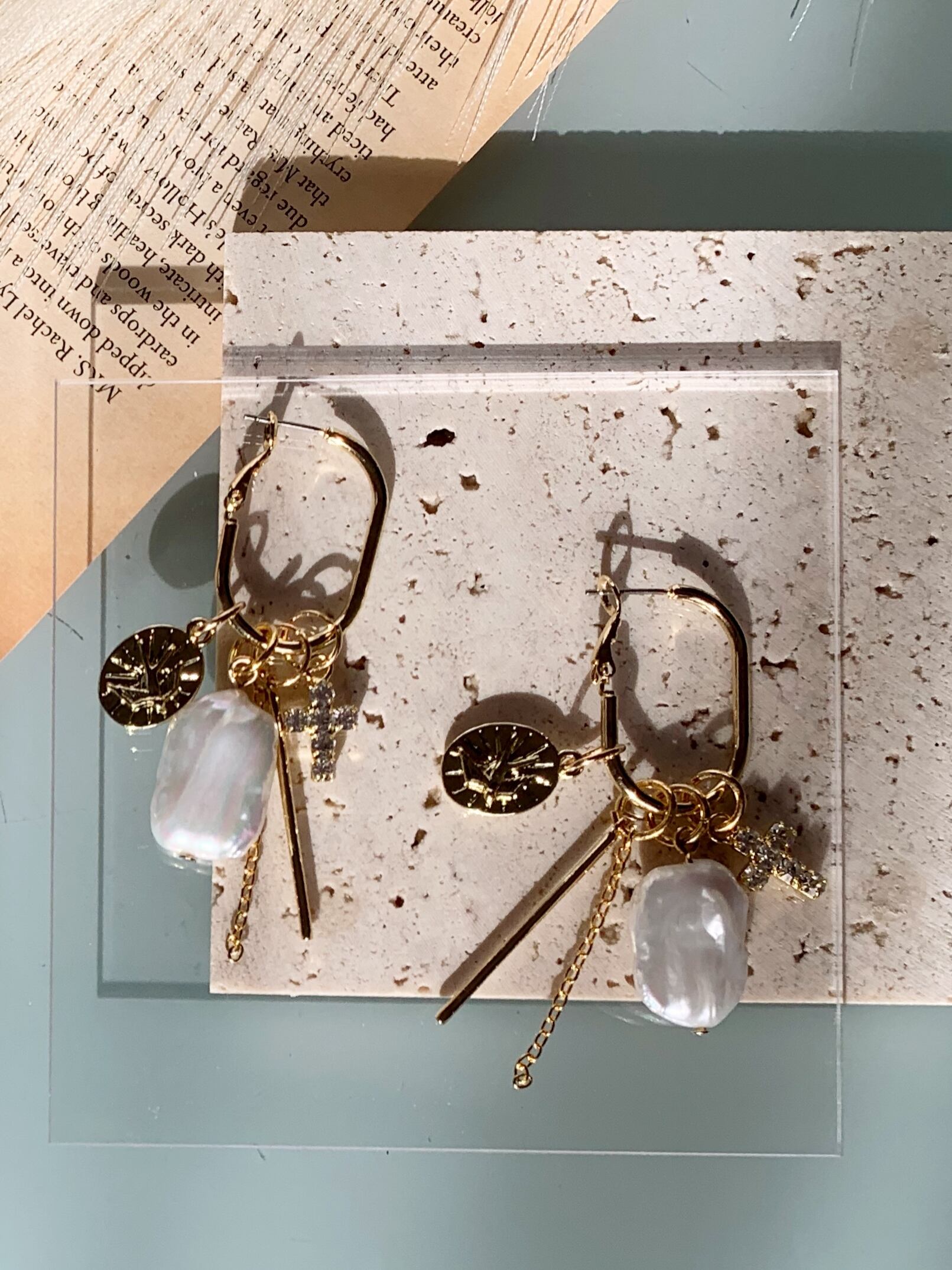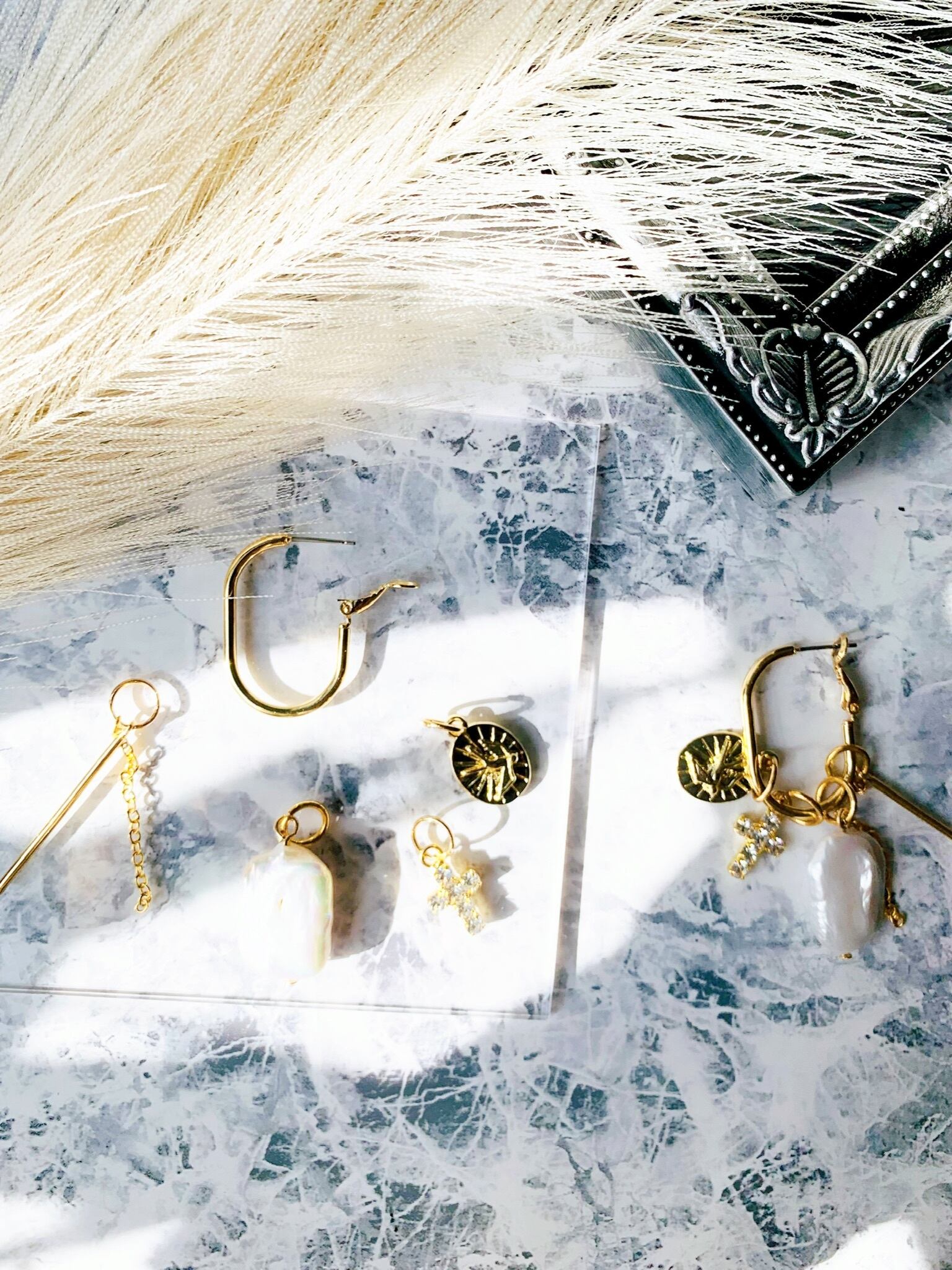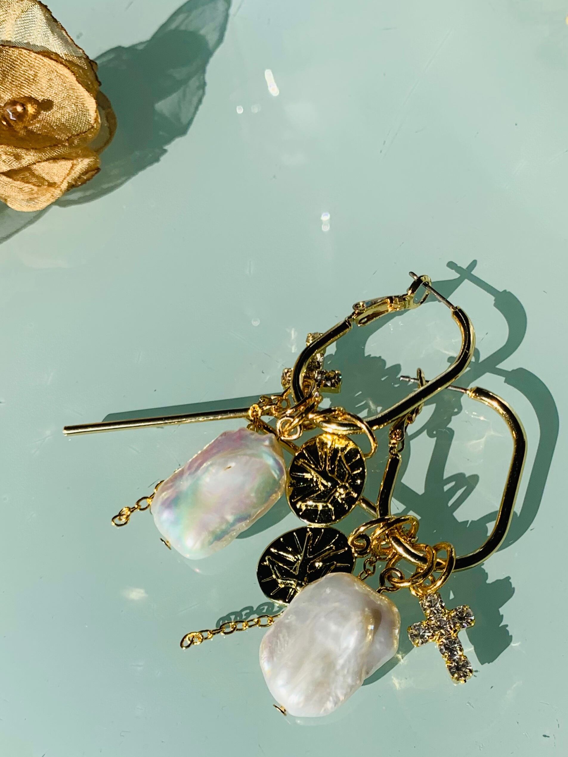 チャームが全て外せるので、淡水スクエアパール、メタルプレート、ジルコニアクロス、ゴールドスティック、チューンを自由にスタイリングできます。