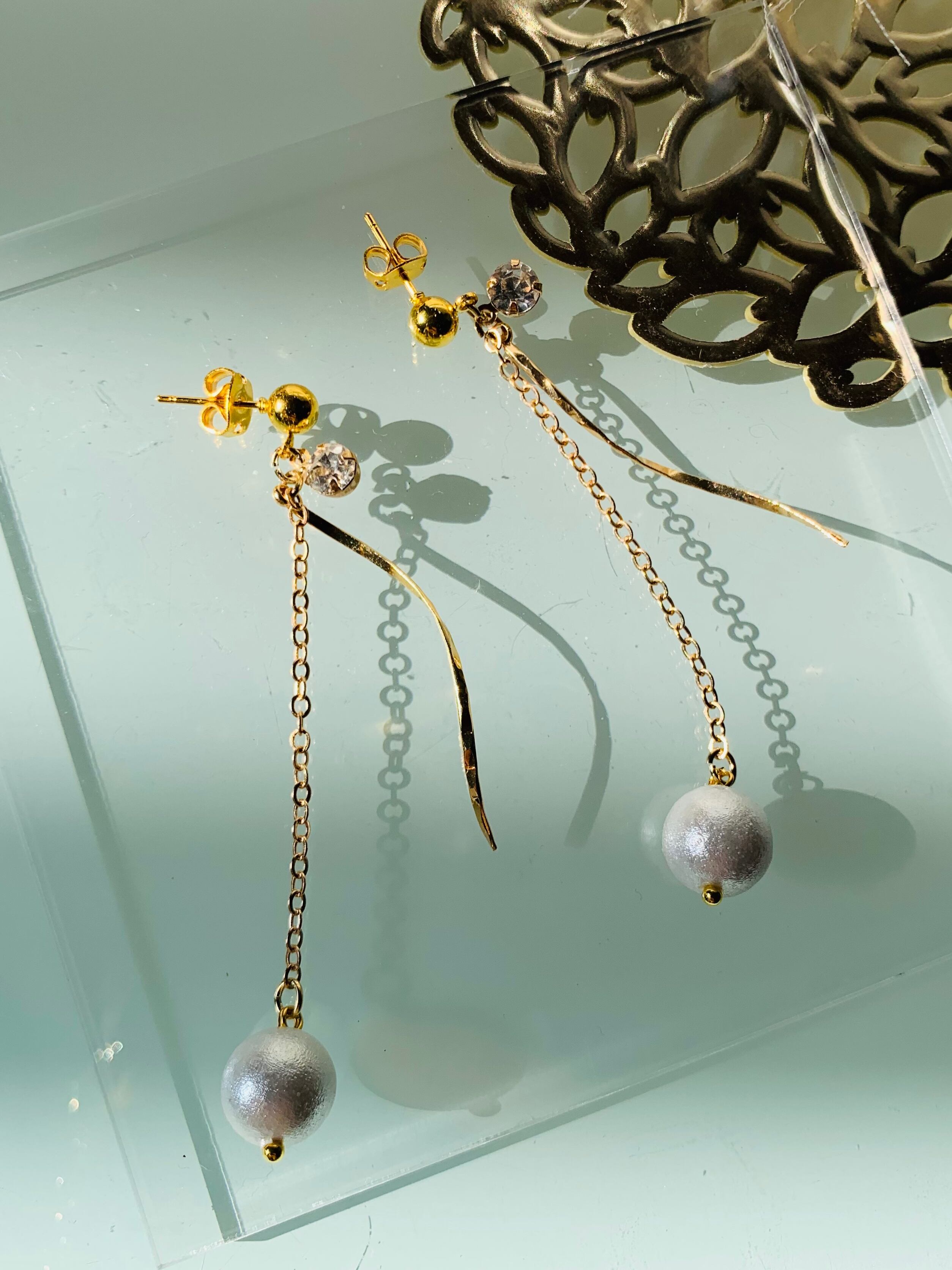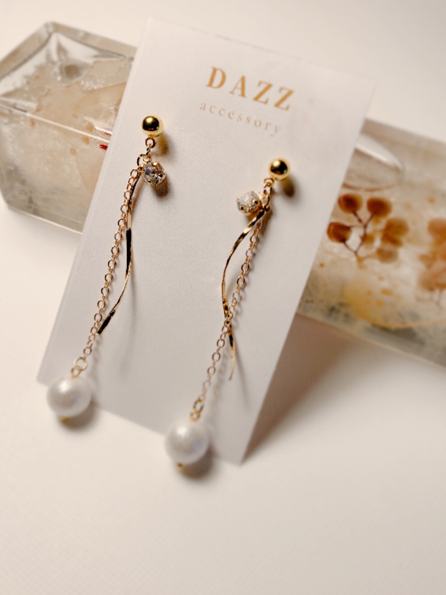 耳元で揺れるチェーンが女性らしい装いを演出し、フォーマルなシーンはもちろん、普段使いにもオススメのアイテムです。