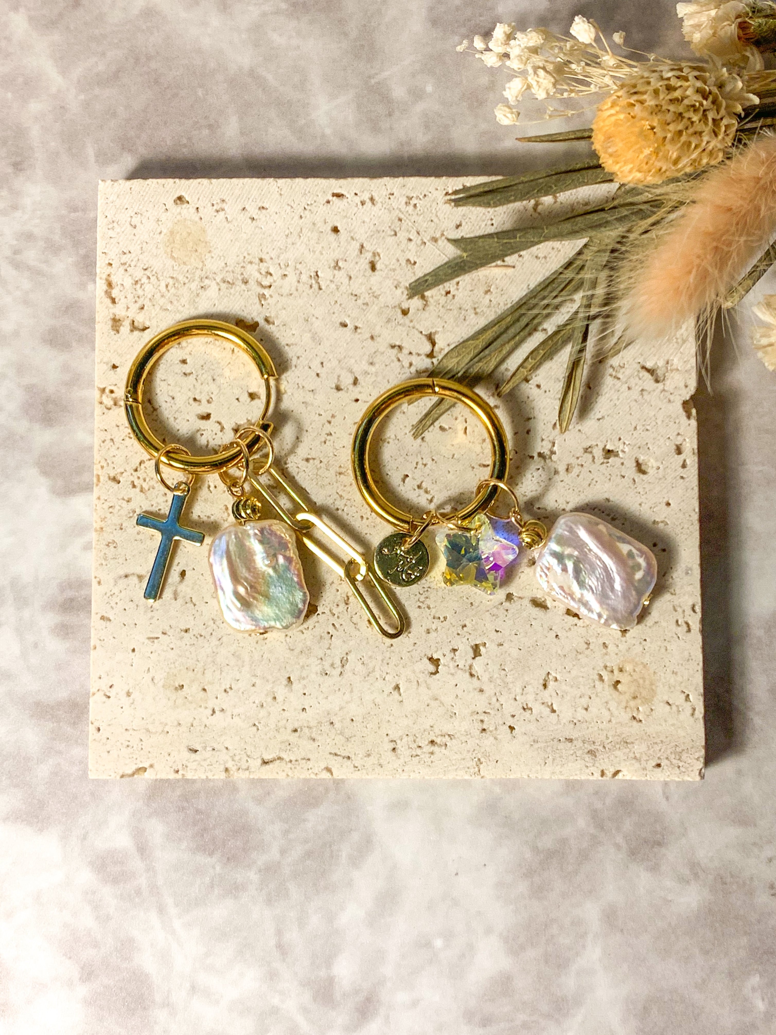 チャームは取り外し可能なので、シンプルなフープピアスとしてもお使いいただけます。