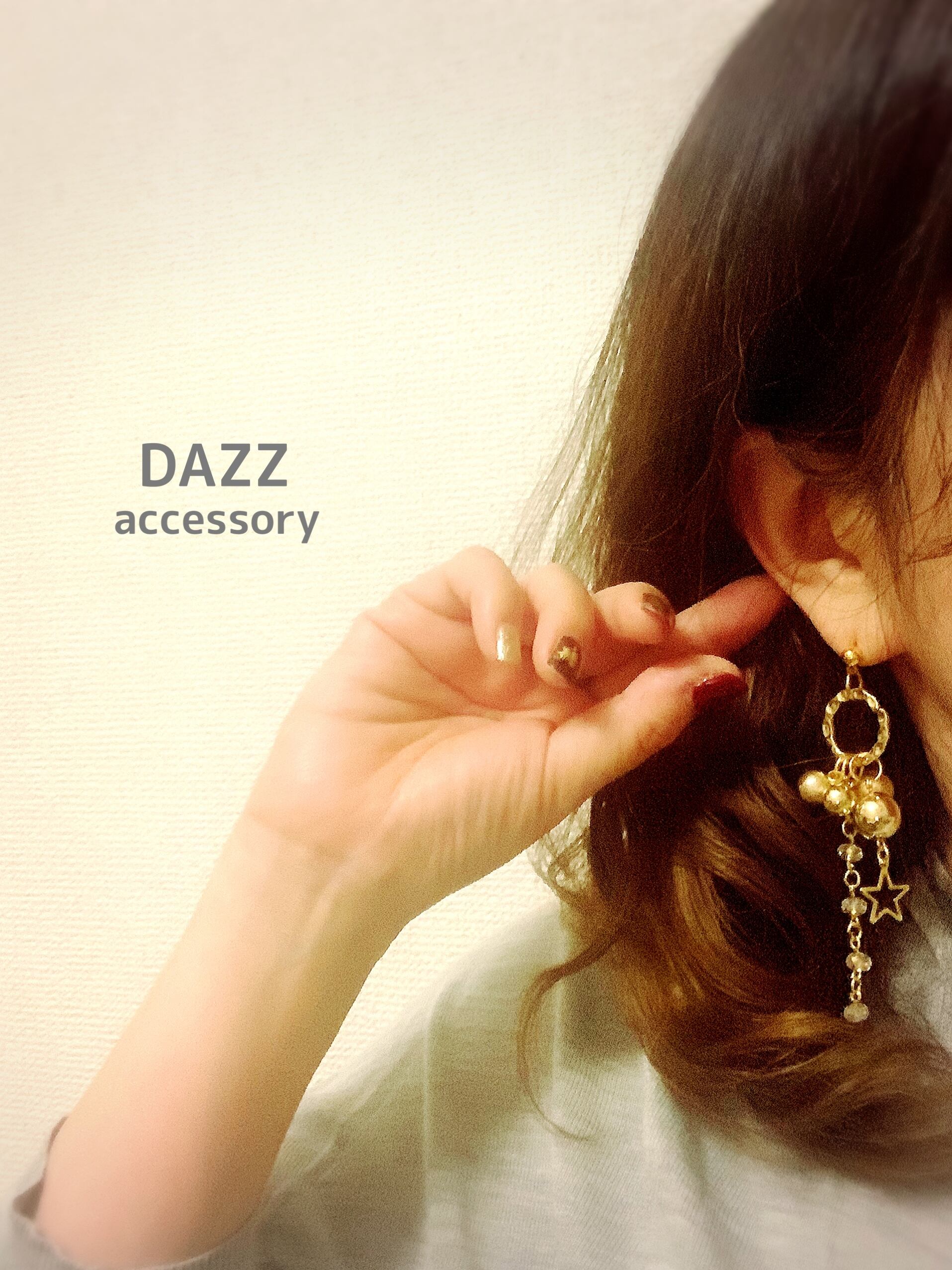 フープのポコポコしたデザインには、ゴールドのメタルパーツがたくさん揺れて、キレイな輝きを放ちます。