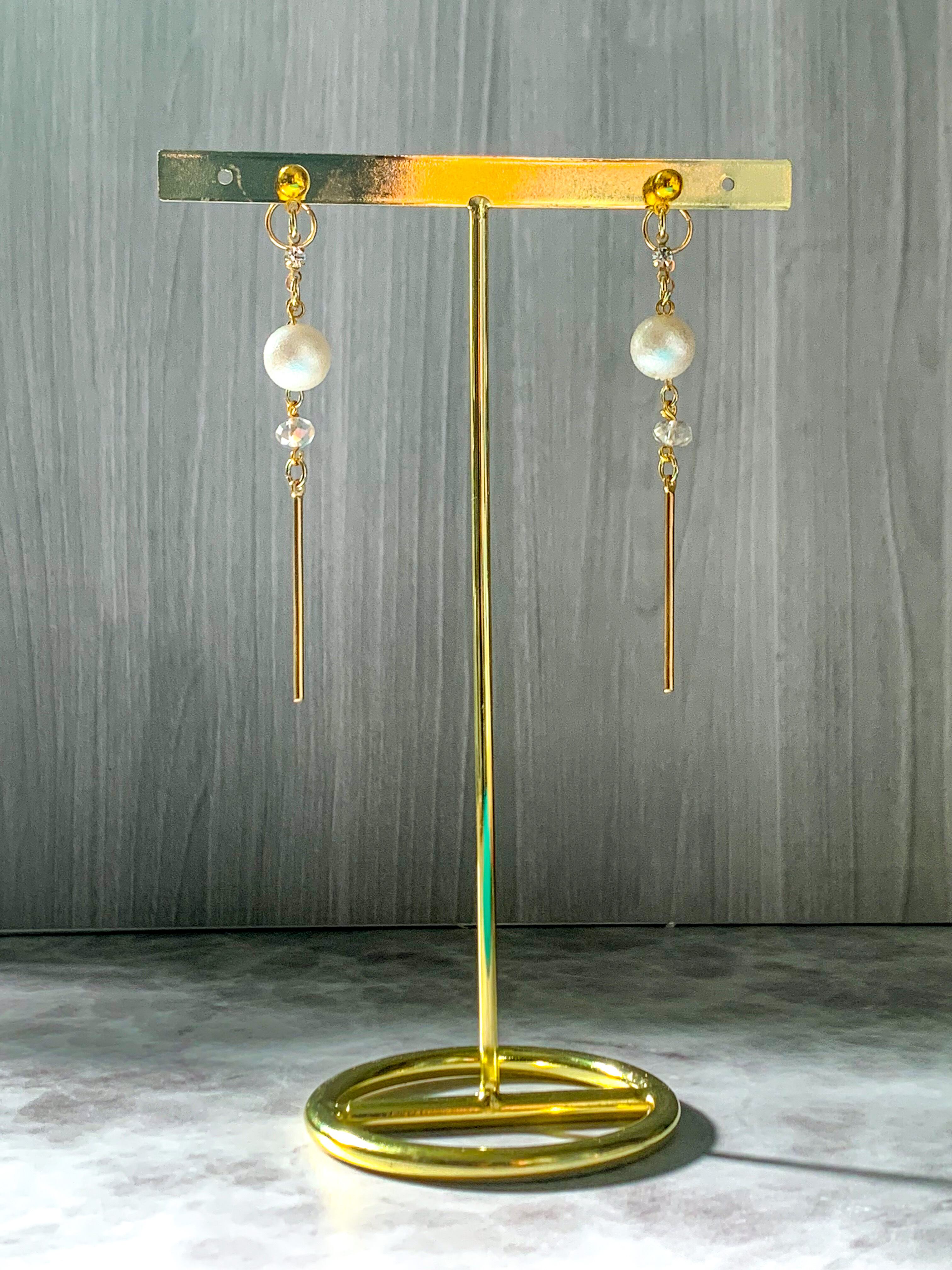 キャッチを付け替えることで、シンプルな一粒パールのピアスに変更することができます。