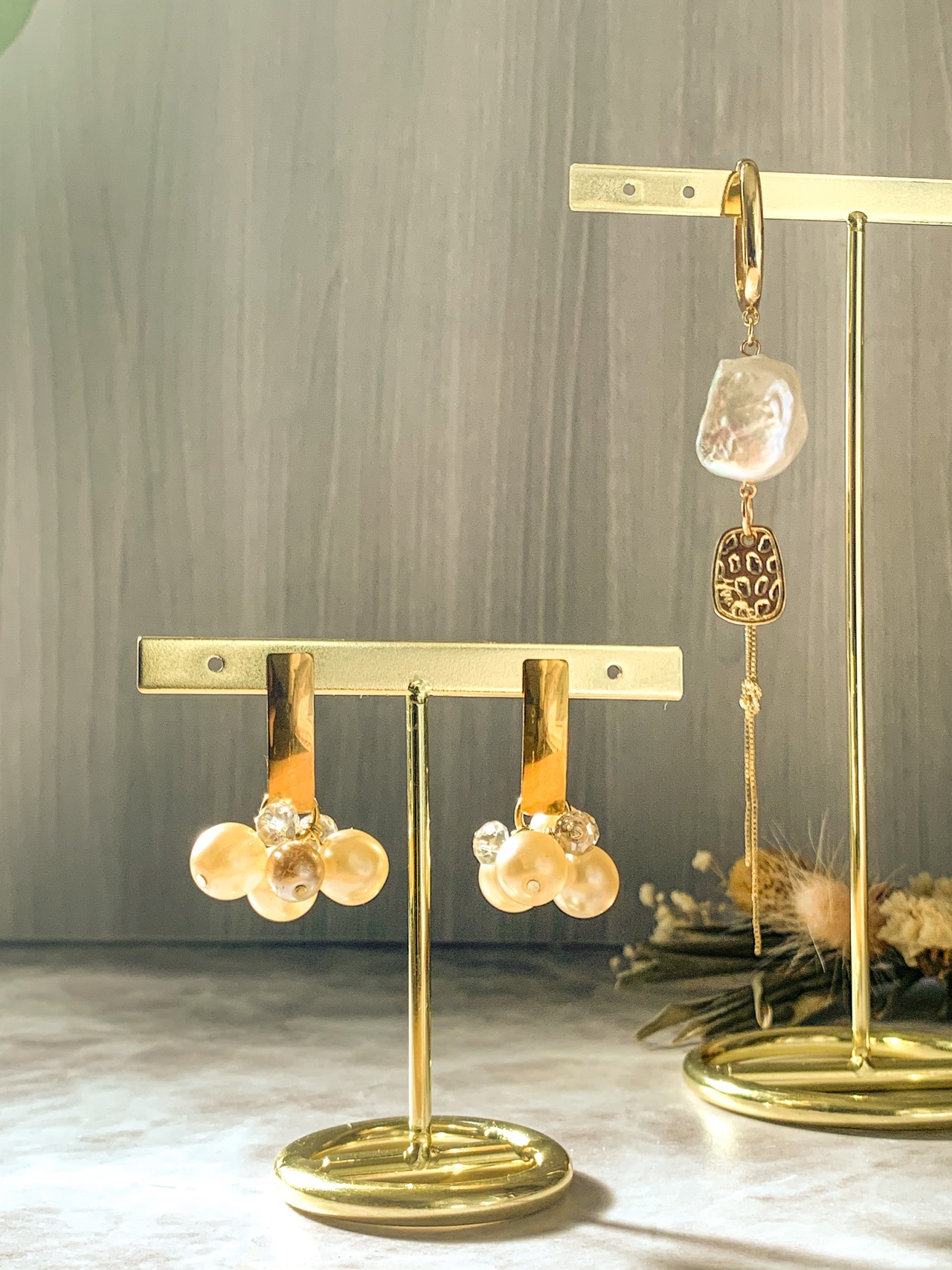 その中でも、このプチピアスに使用したのは、輝きが美しい種類のチェコパール。