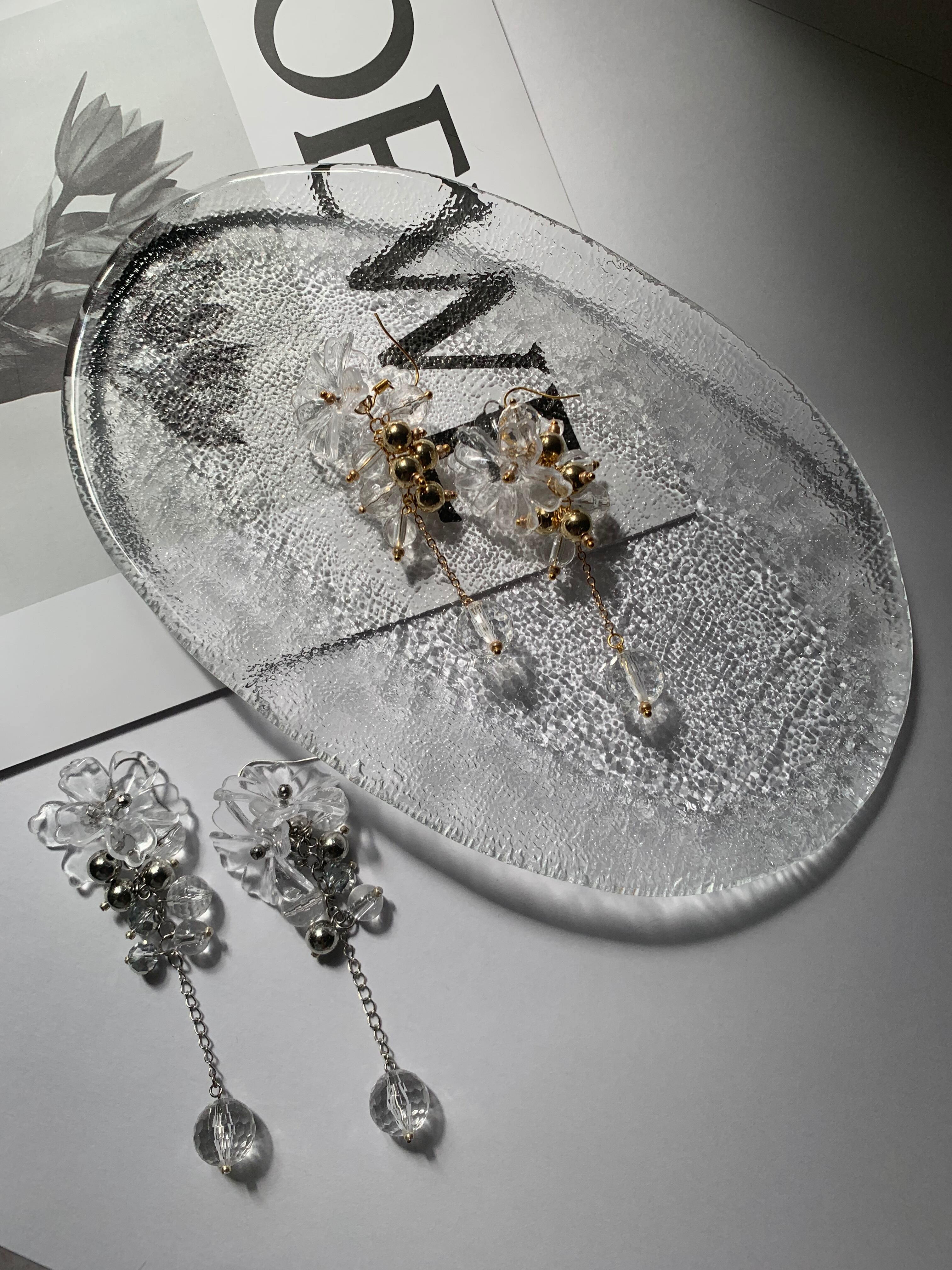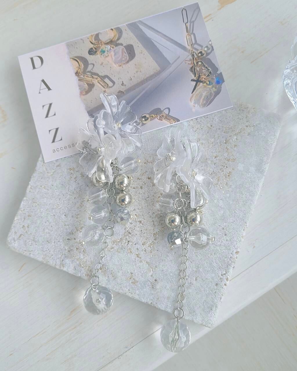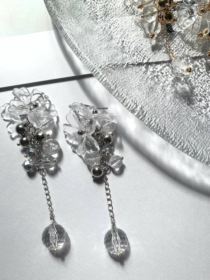 あなたらしいスタイルを演出するクリアフラワーピアスで、ファッションに彩りを添えましょう。