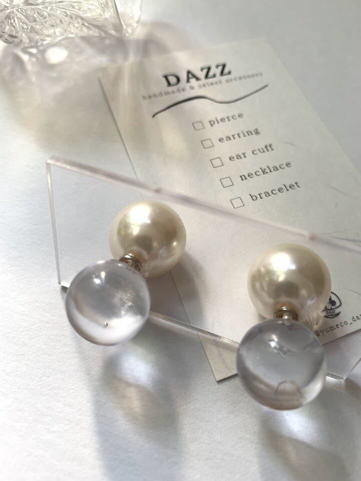 透明感がどんなコーディネートにも合わせやすく、きらめきがあるパールキャッチがアクセントに。