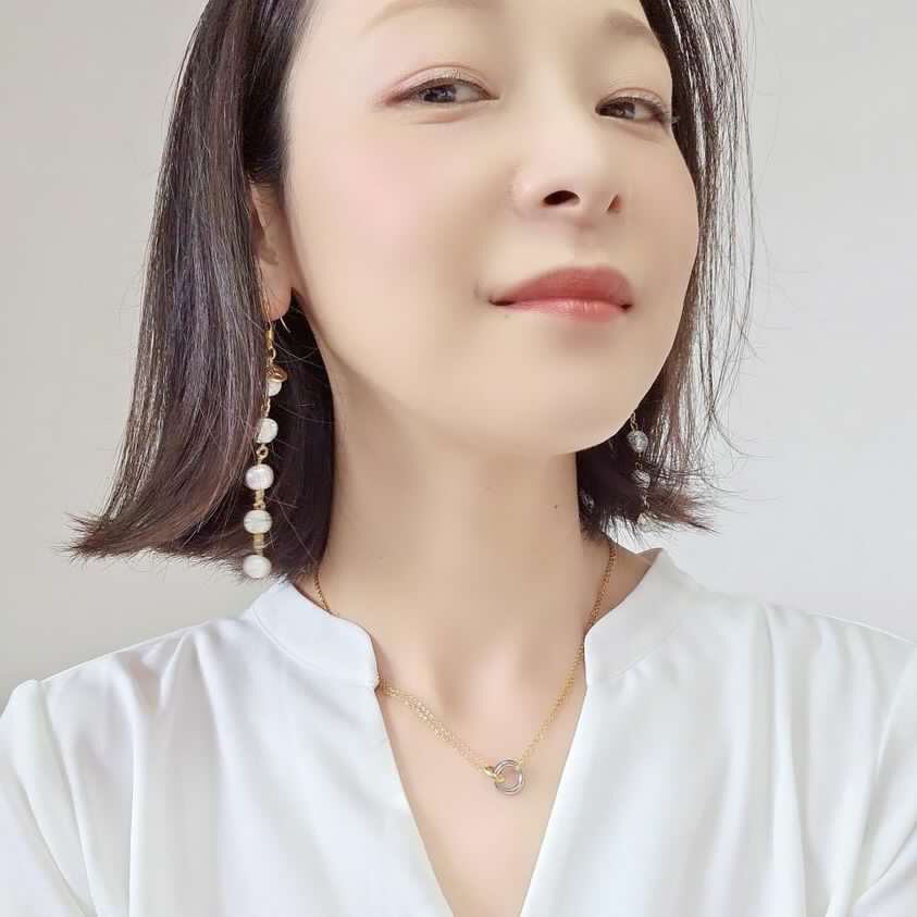 小粒の淡水パールとクラックガラスが6つ連なったデザインは、シンプルながら華やかで上品な印象を与えます。