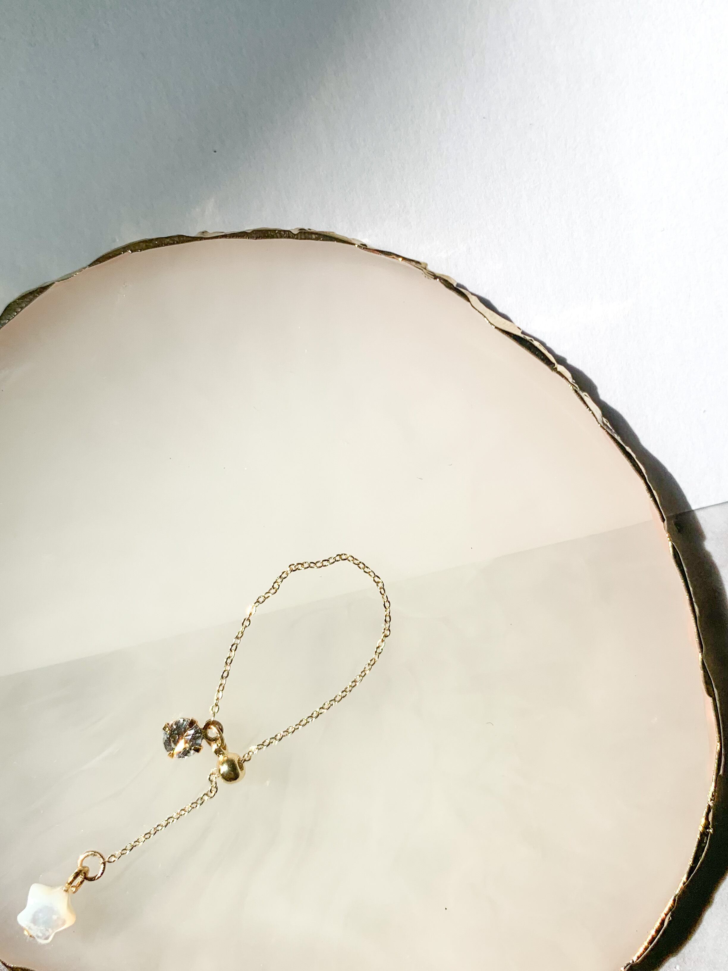 ジルコニアだけでなく、チェーンの先の星型シェルも上品な輝きを放っています。