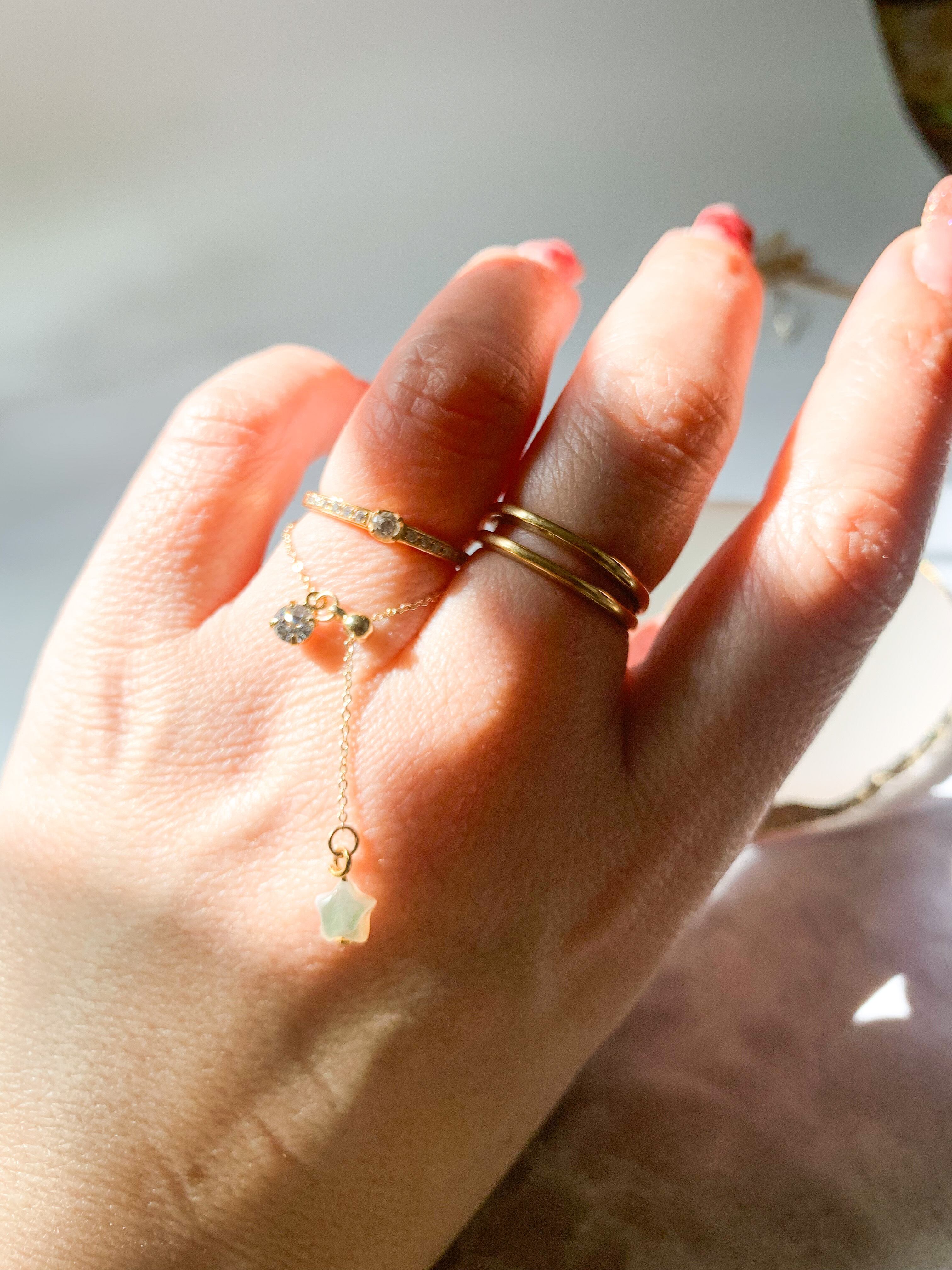 華奢な極細チェーンは指を綺麗に見せ、他の指輪との重ね付けもオススメ♡
