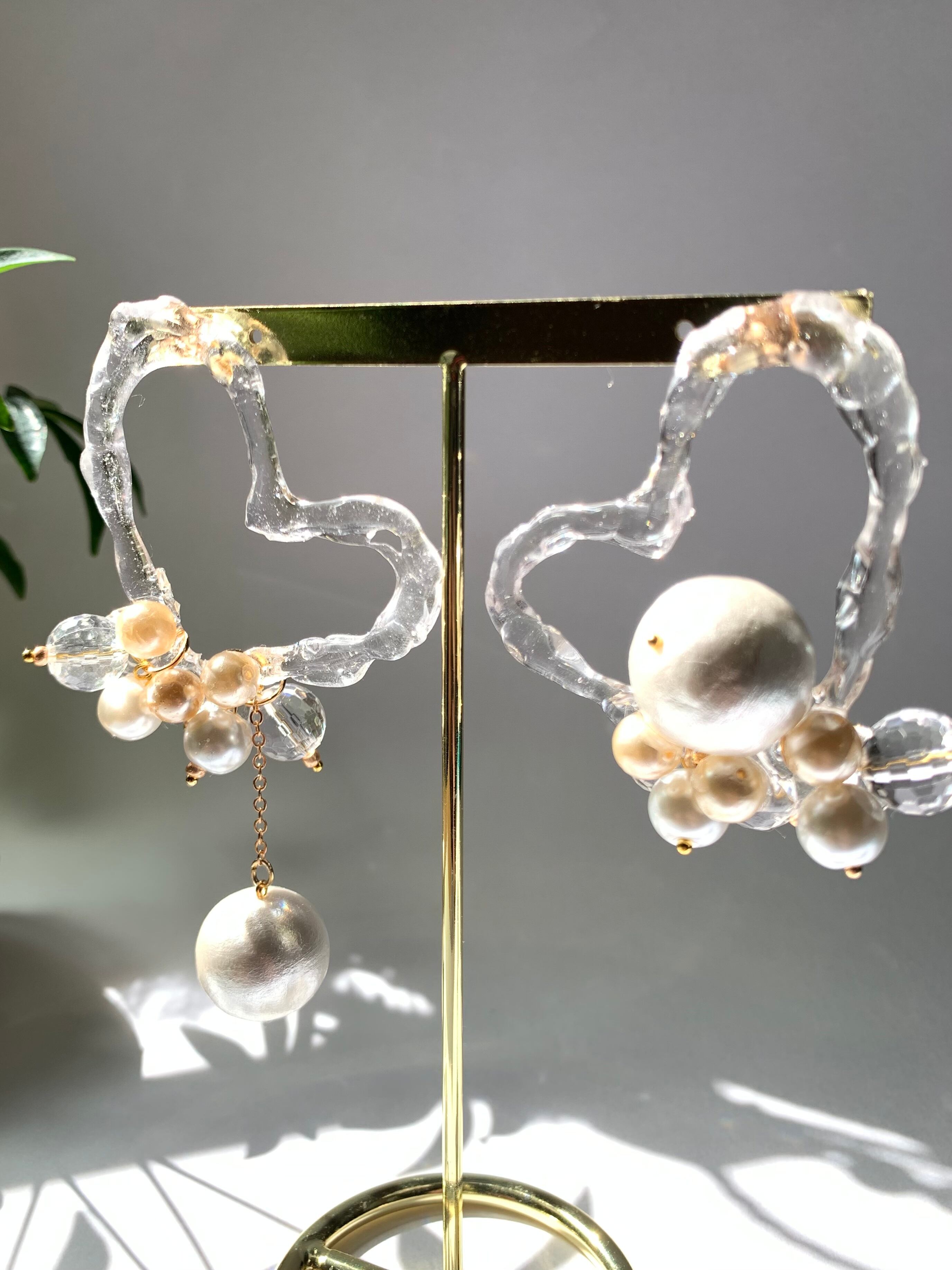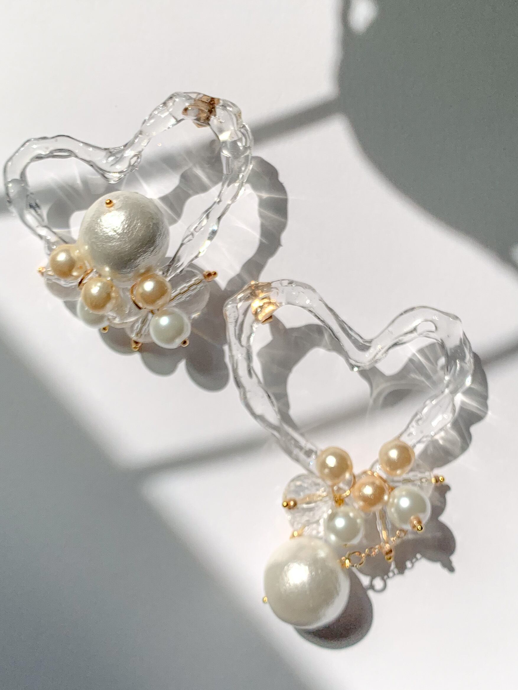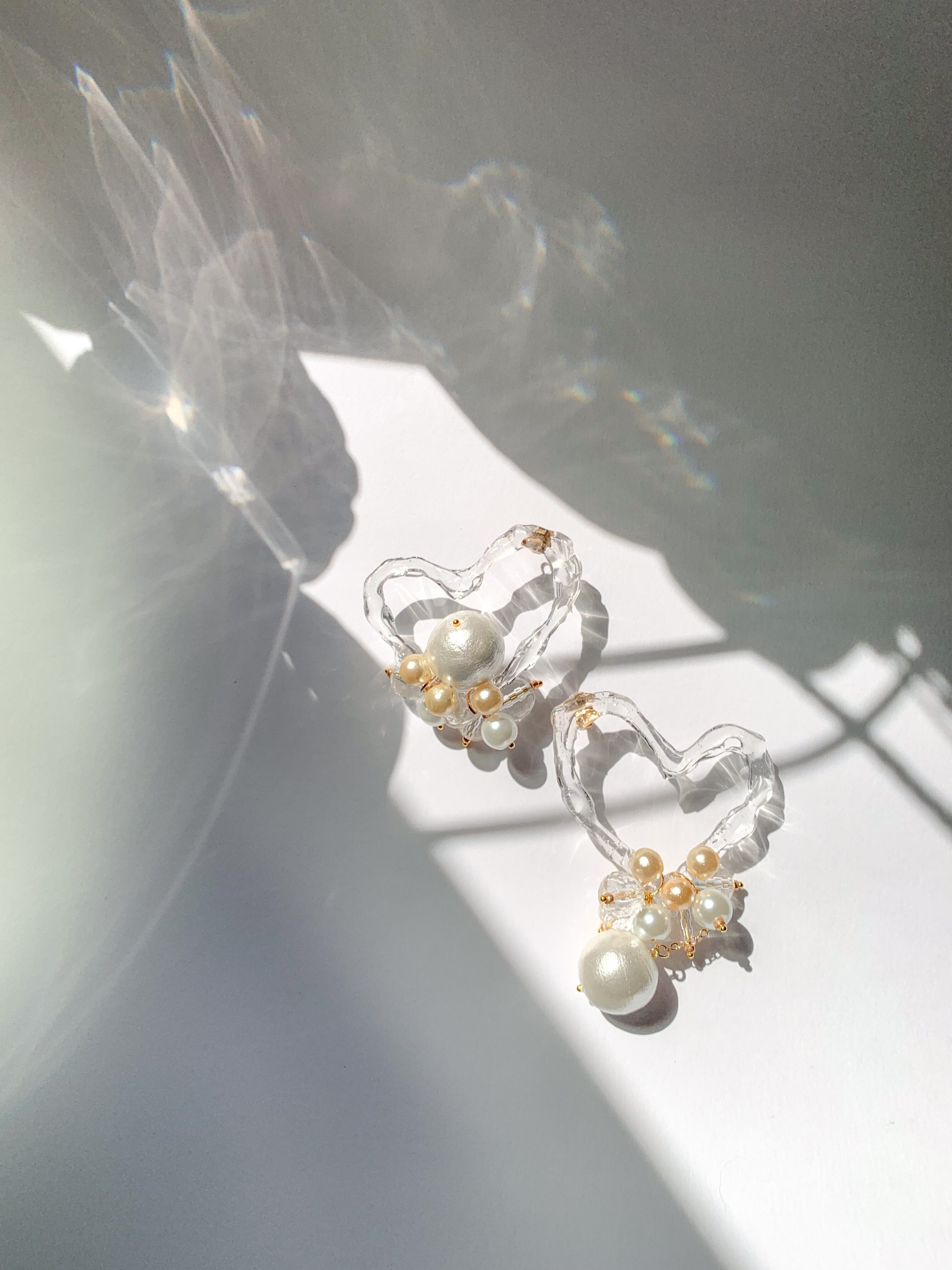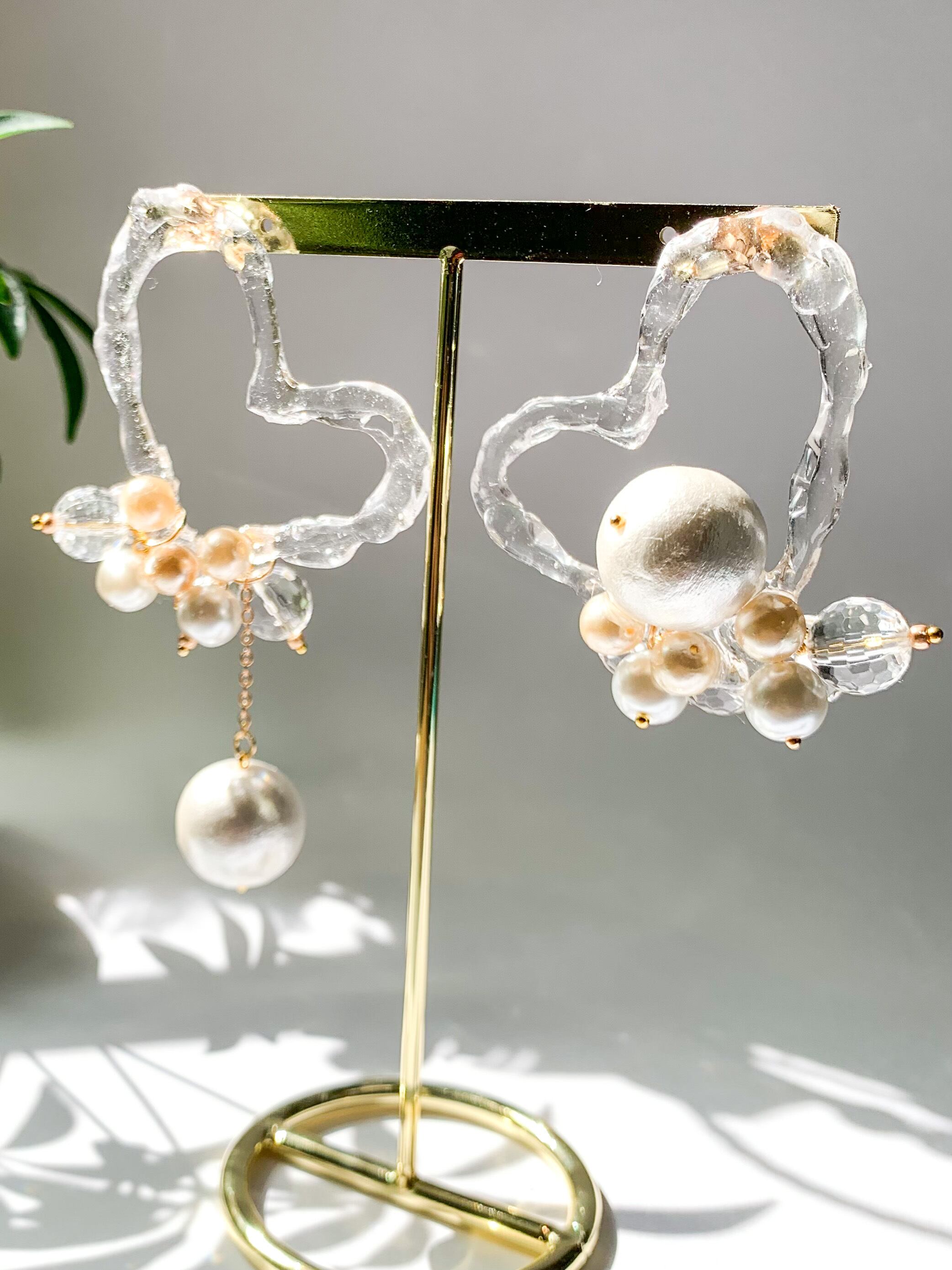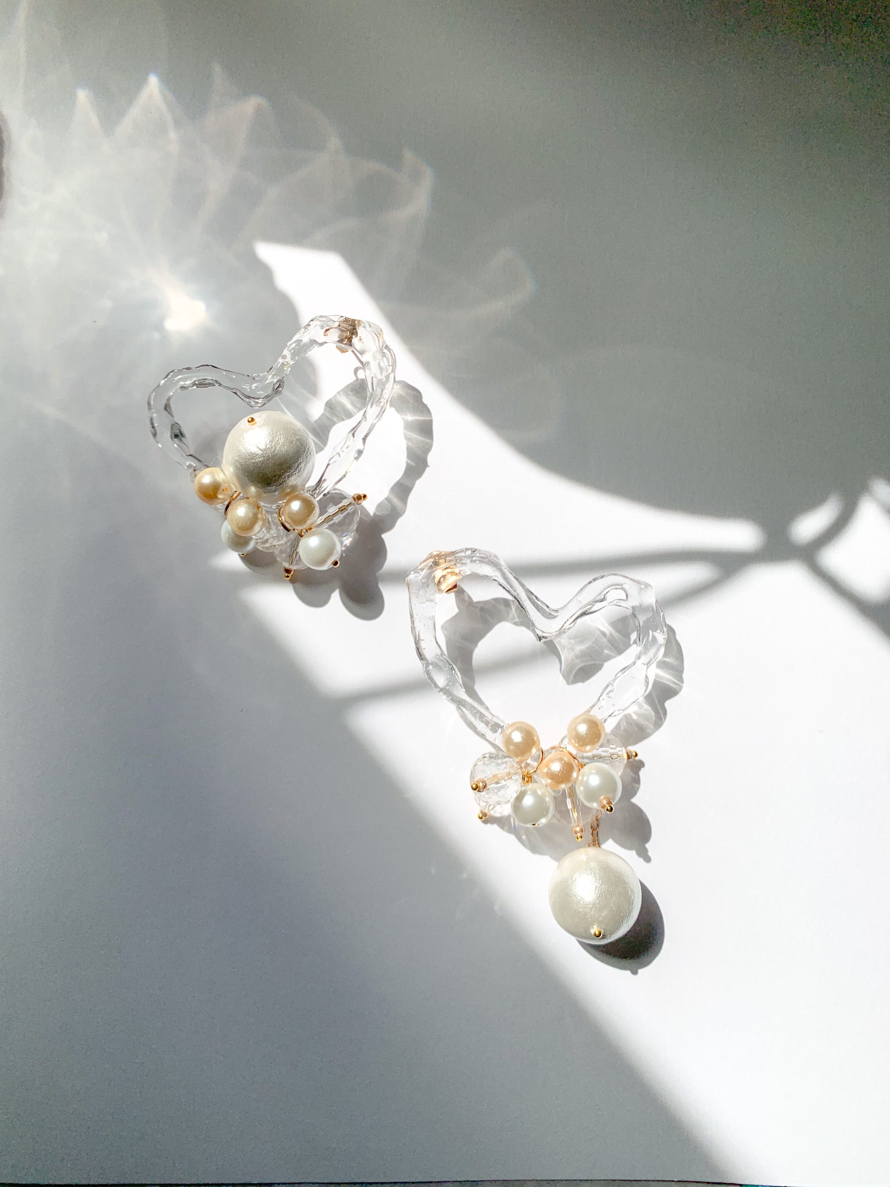 クリアハートとビックパールのアシメデザイン