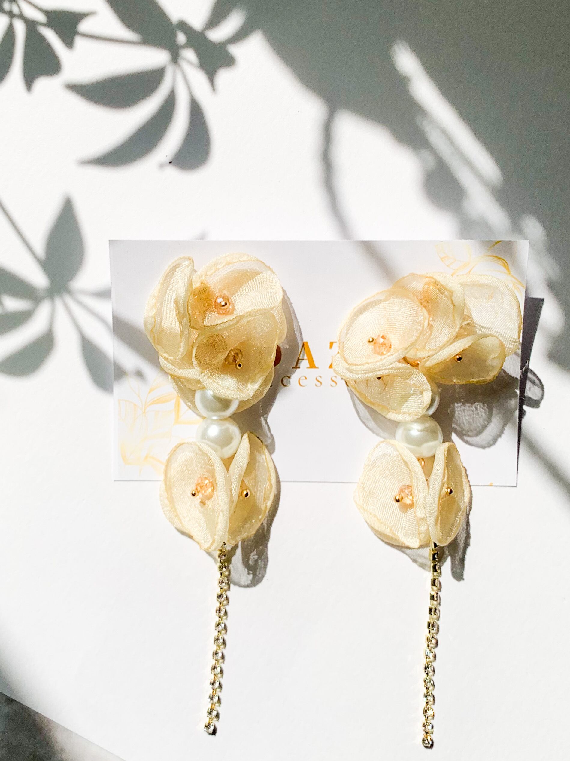 耳たぶに沿うデザインは、お花が咲いたように顔周りの印象を華やかにしてくれます。