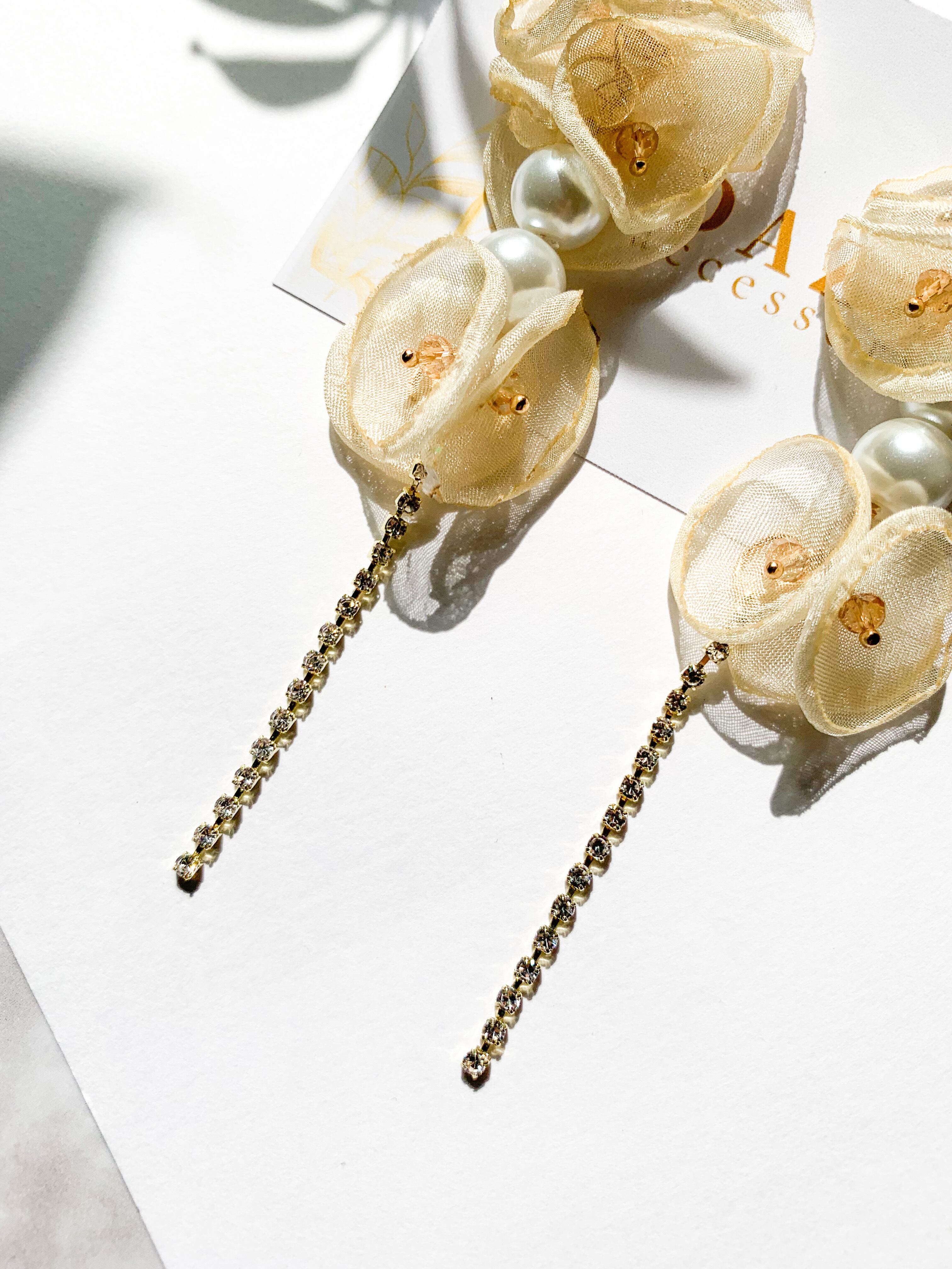 日々のファッションに、大切な日の華やかさに、シフォンフラワーとパールがあなたを彩ります。