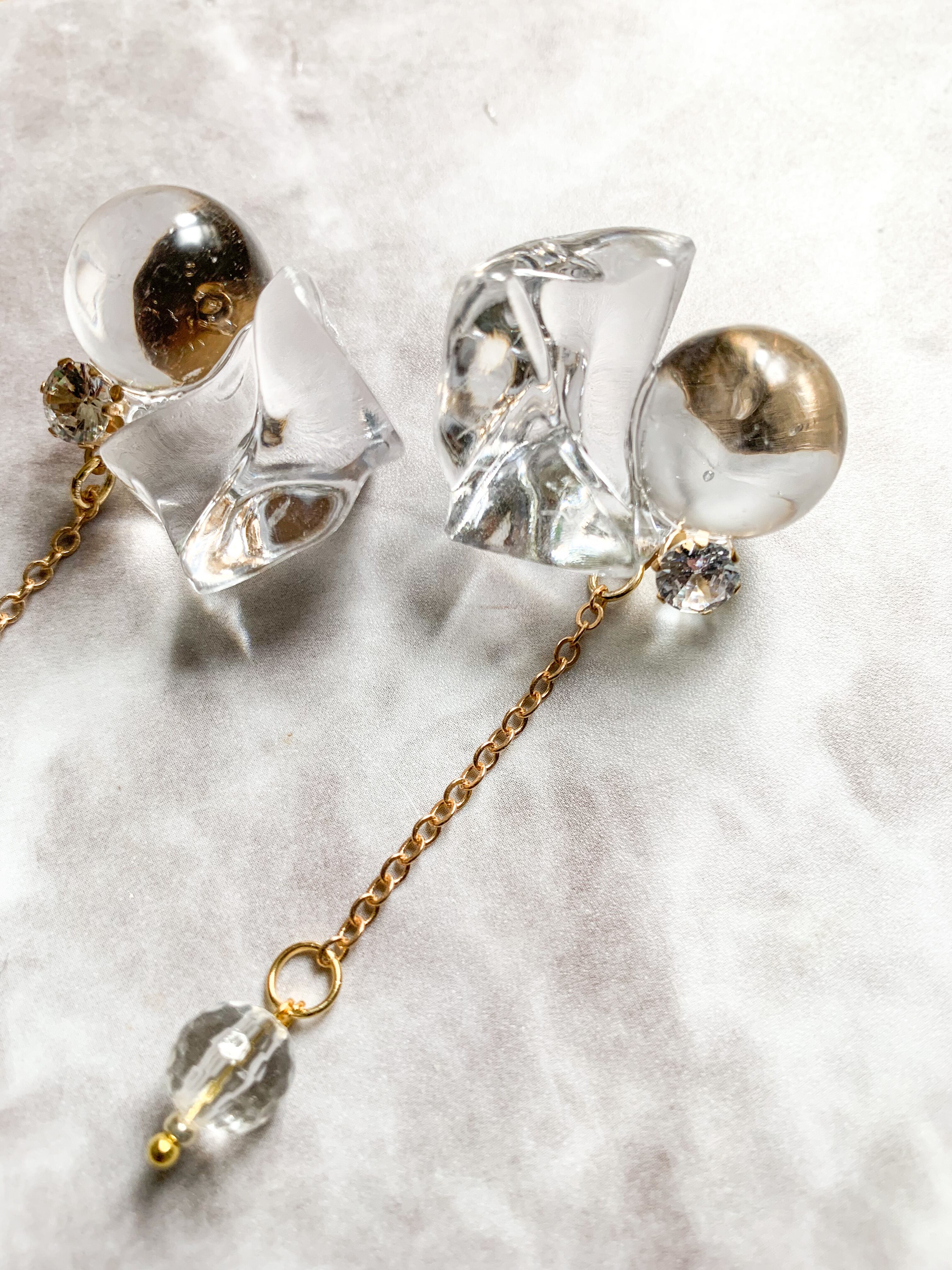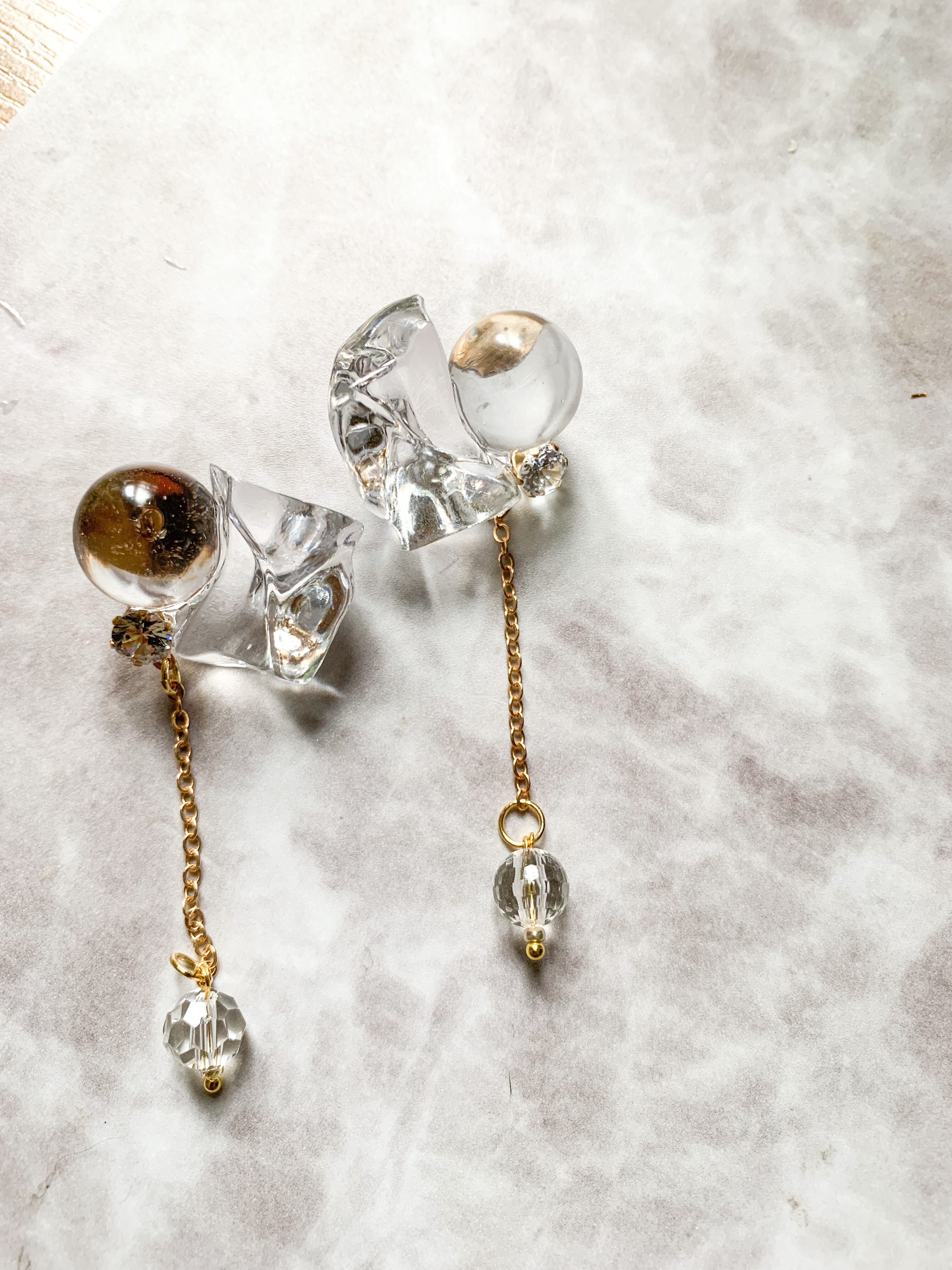 氷みたいなクリアパーツと一粒ジルコニアピアス