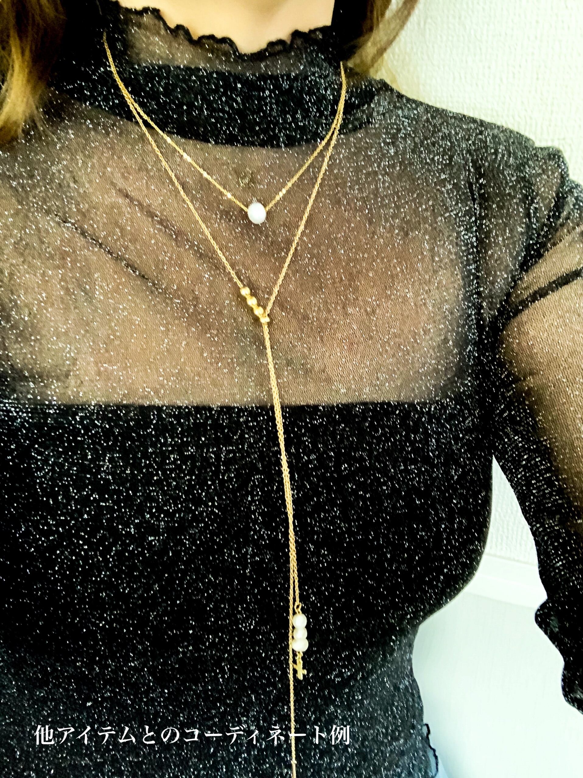 9mmほどのサイズ感で、どんなシーンにも合わせやすく、チェーンはアジャスターで長さ調節が可能。
