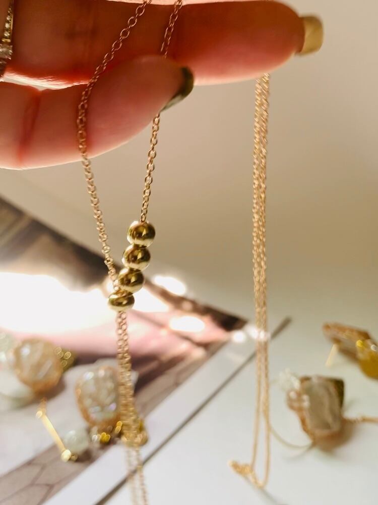 淡水パール3つが可愛らしい、スライドボールのロングネックレスが登場しました。