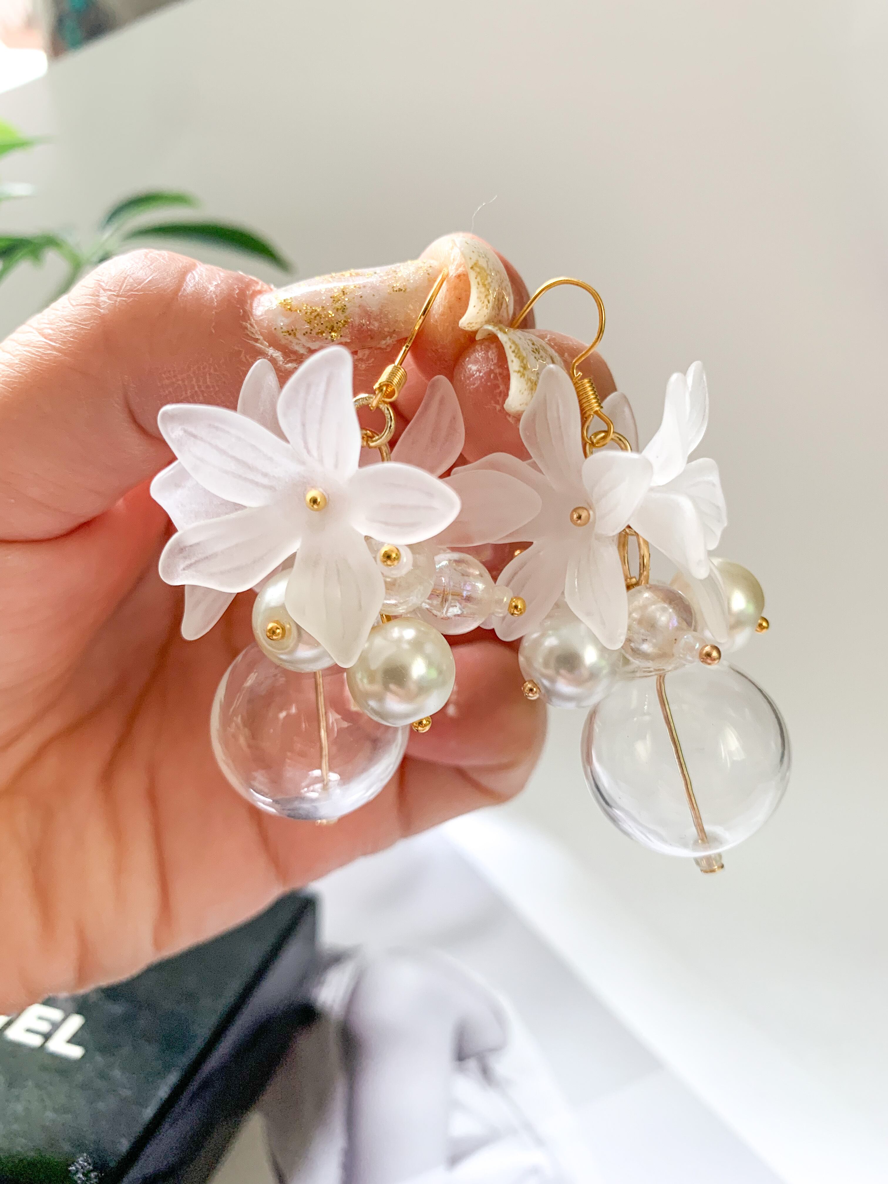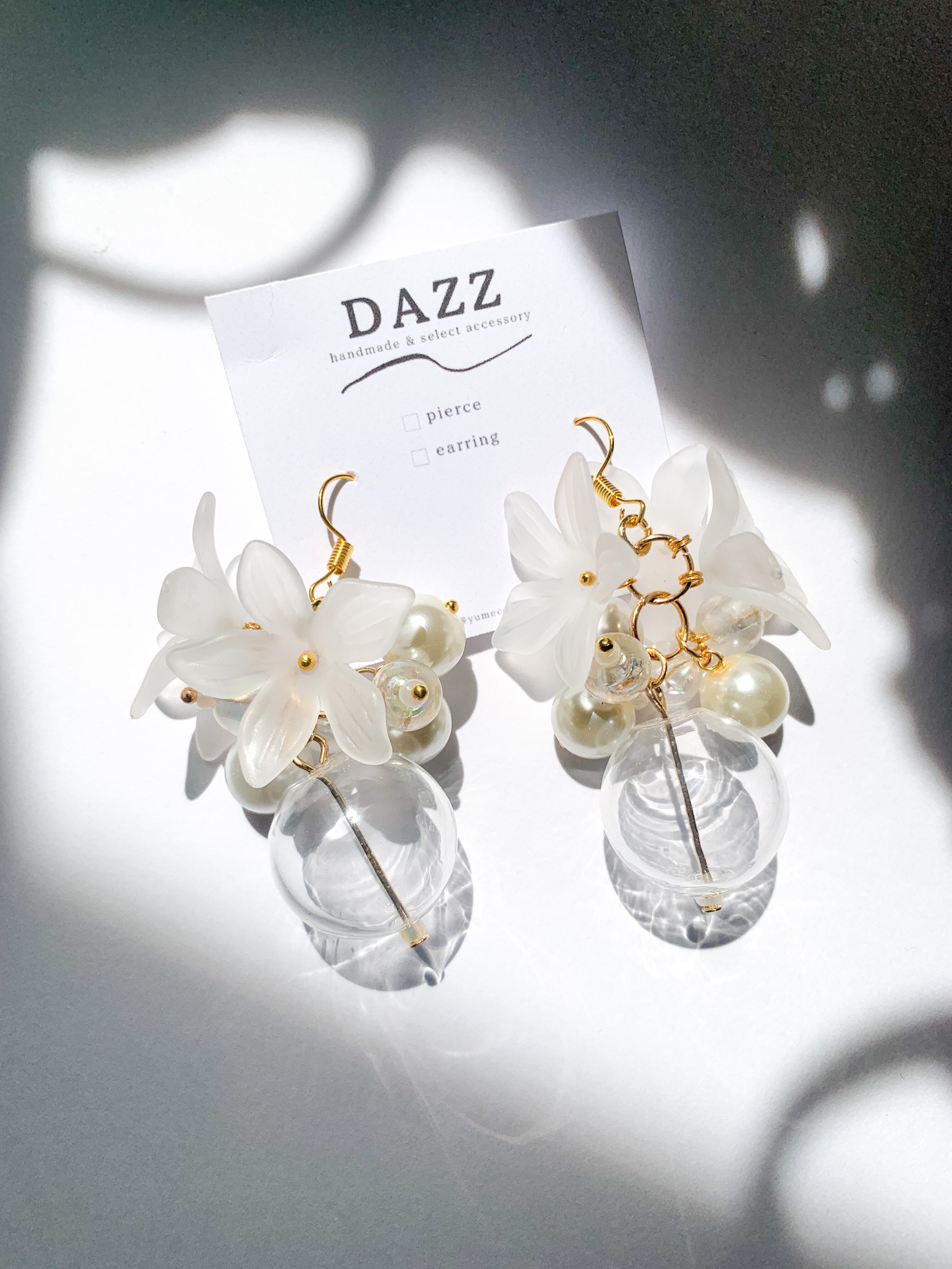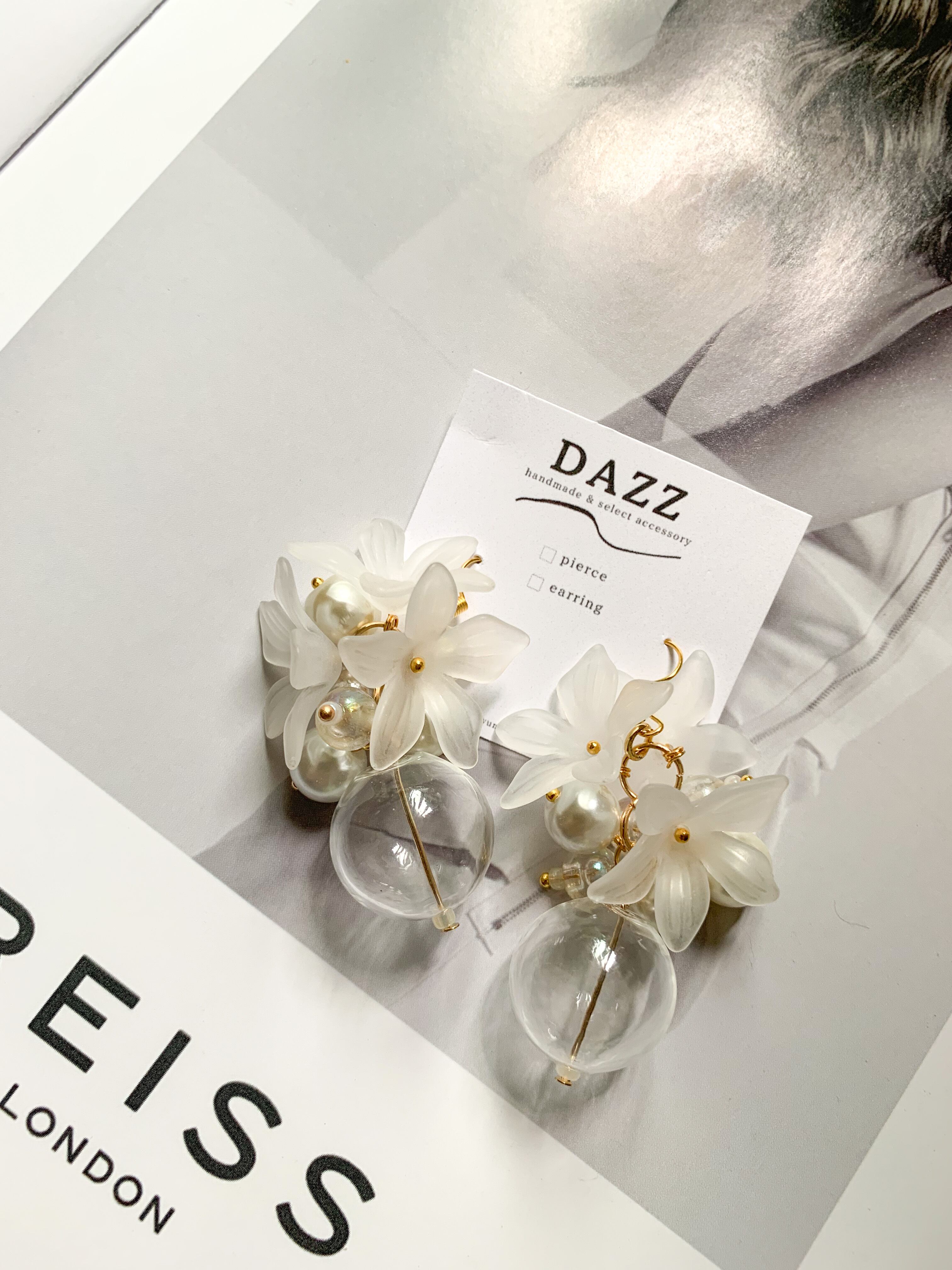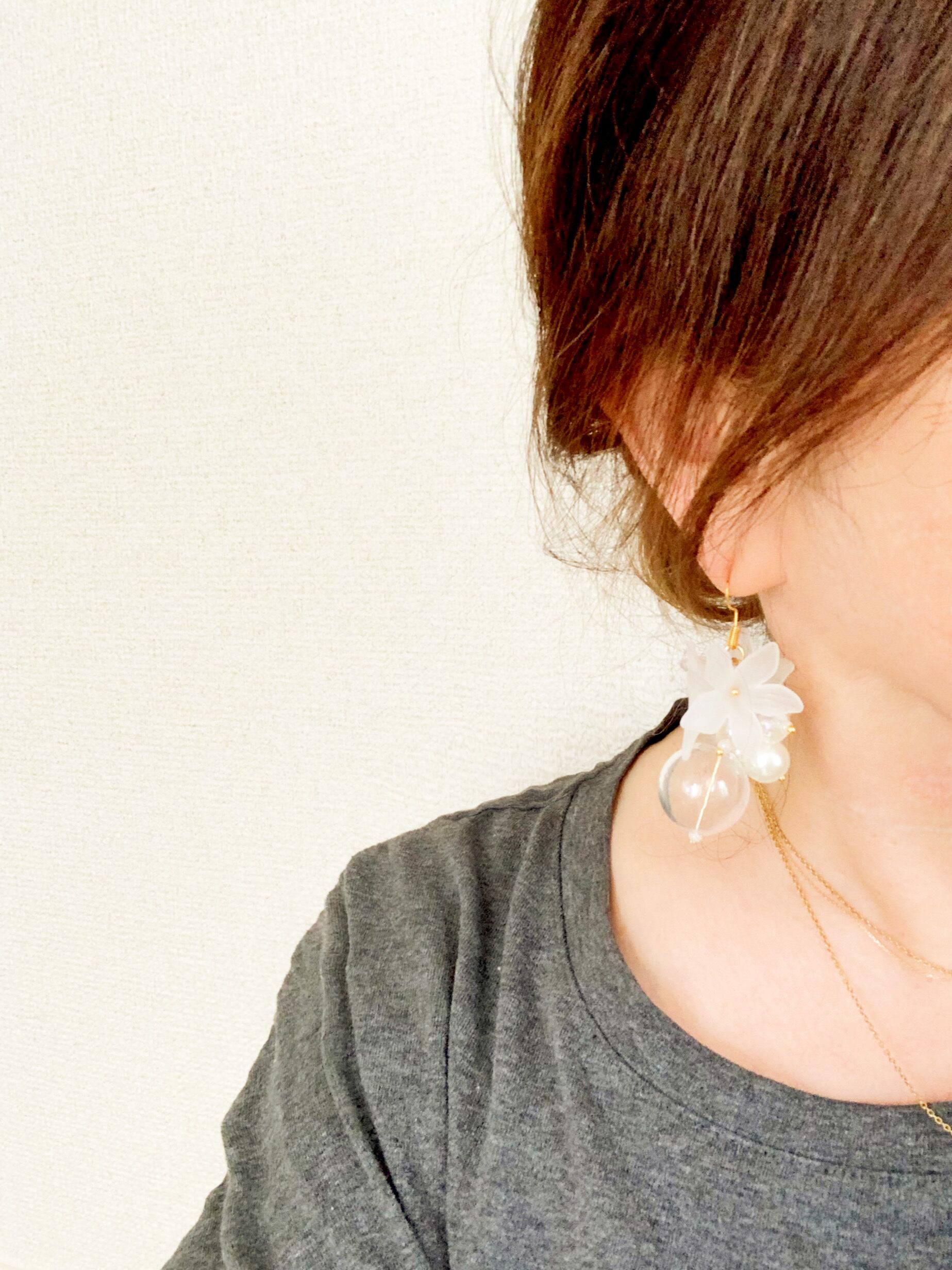 ガラスの美しさと透明感のある花々が、お顔周りを明るく彩ります。