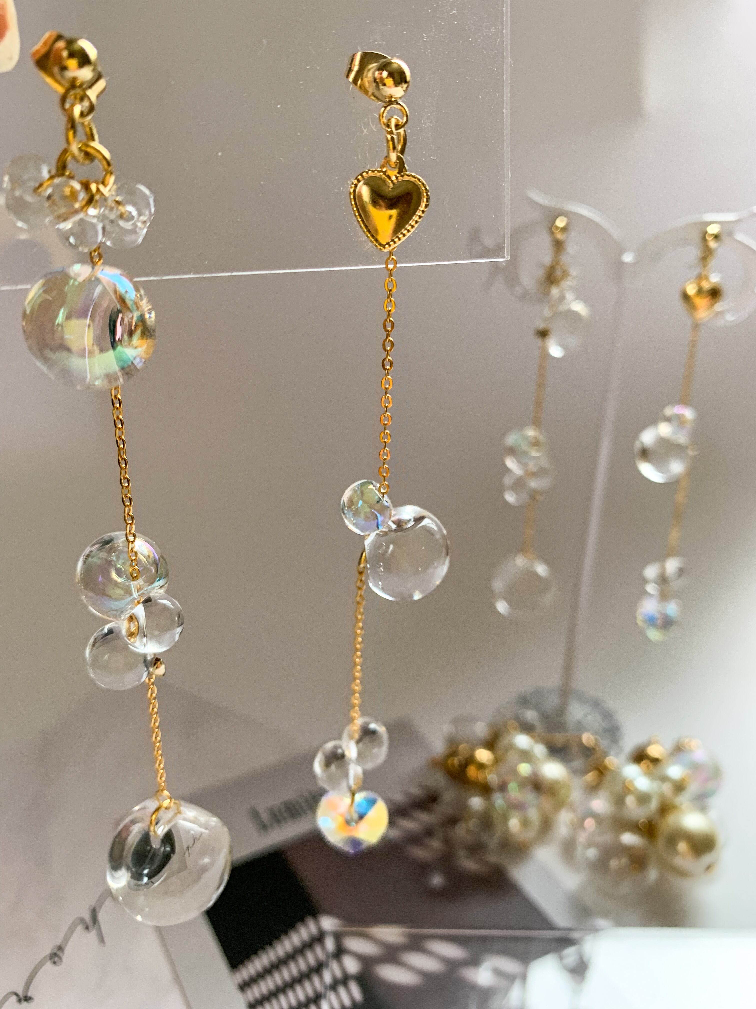 雨粒のようなデザインと、キラキラ輝くチェーンが女性らしさを引き立てます。