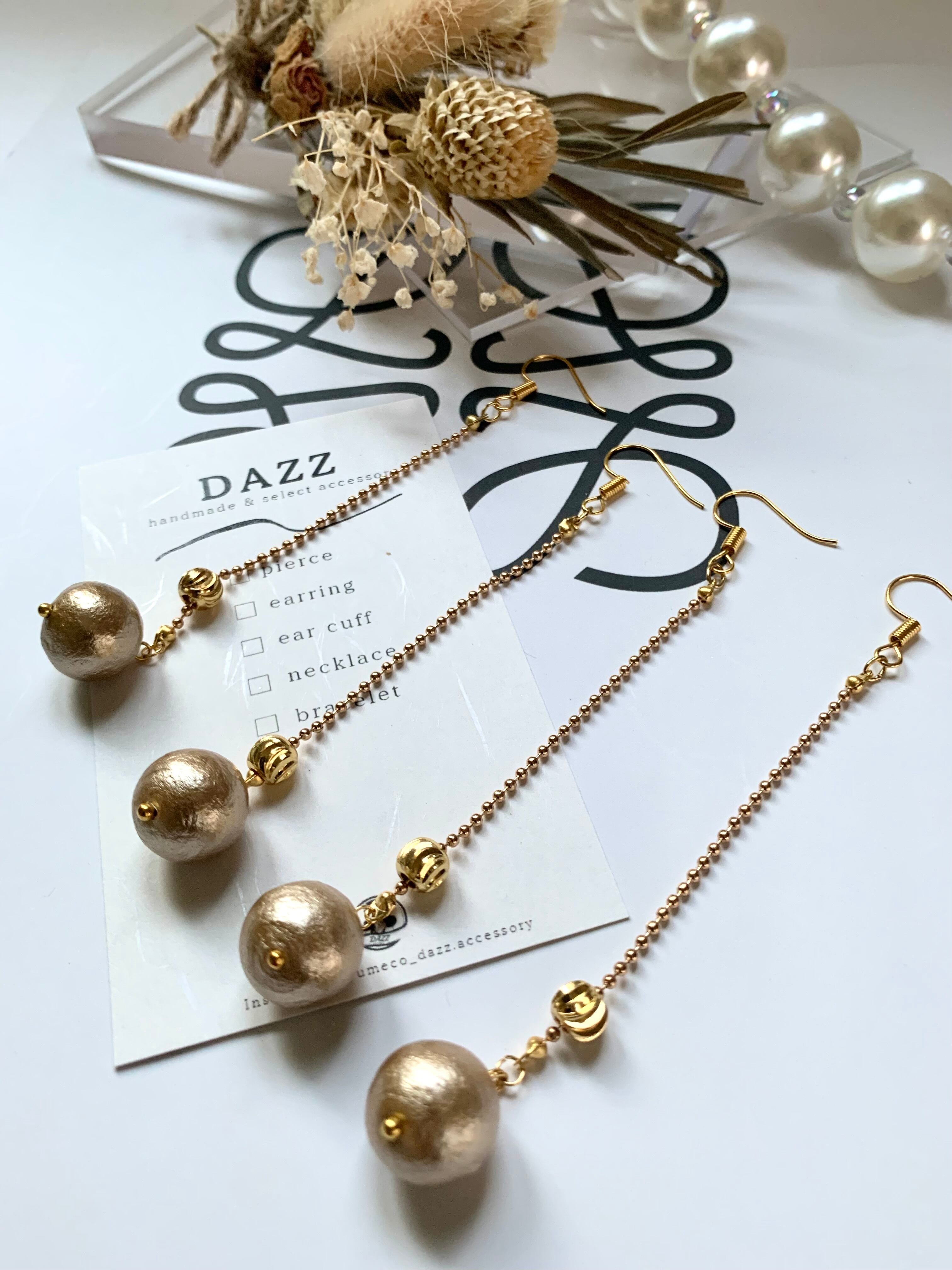 パールの上のゴールドビーズは、めずらしい波型なんです。
