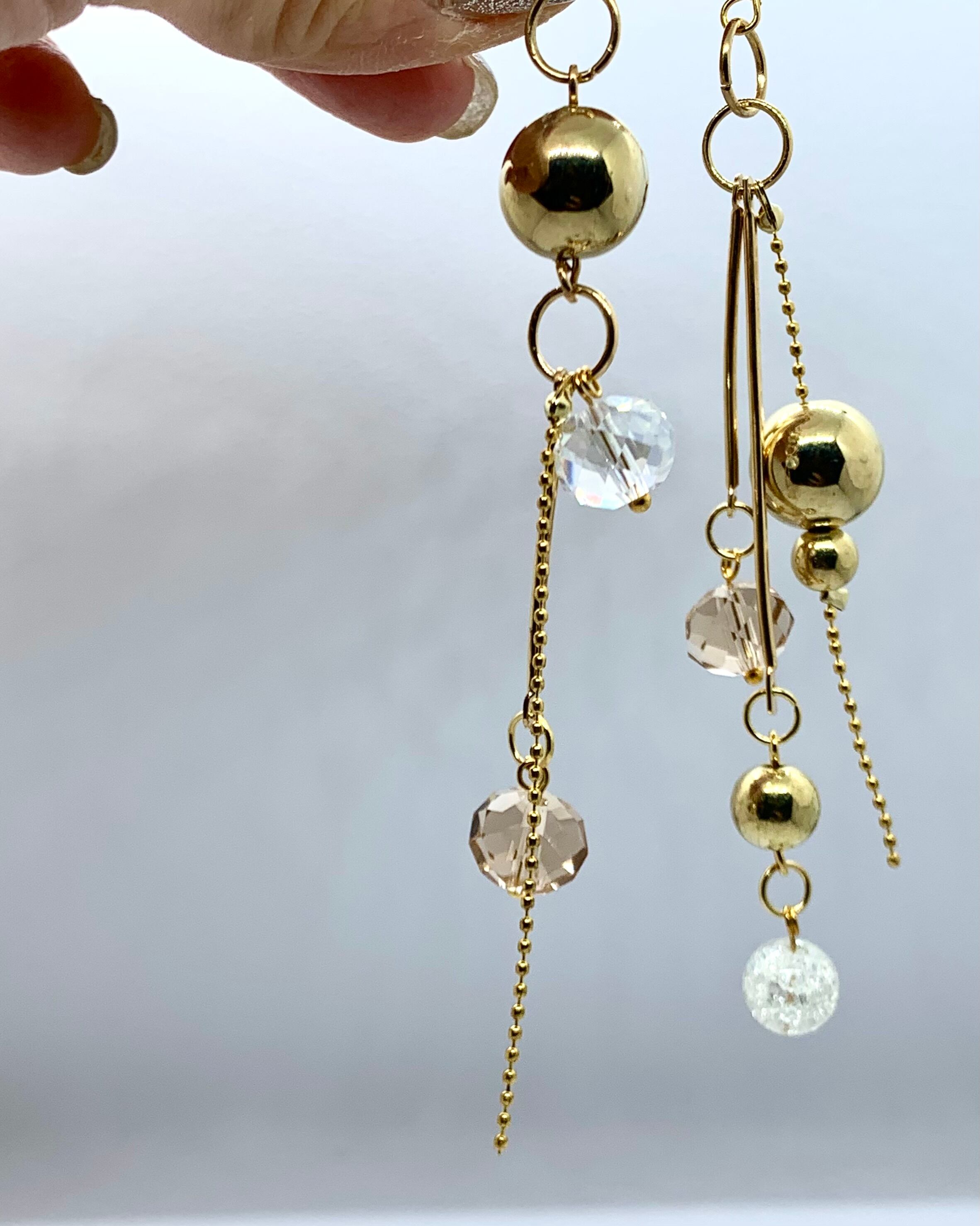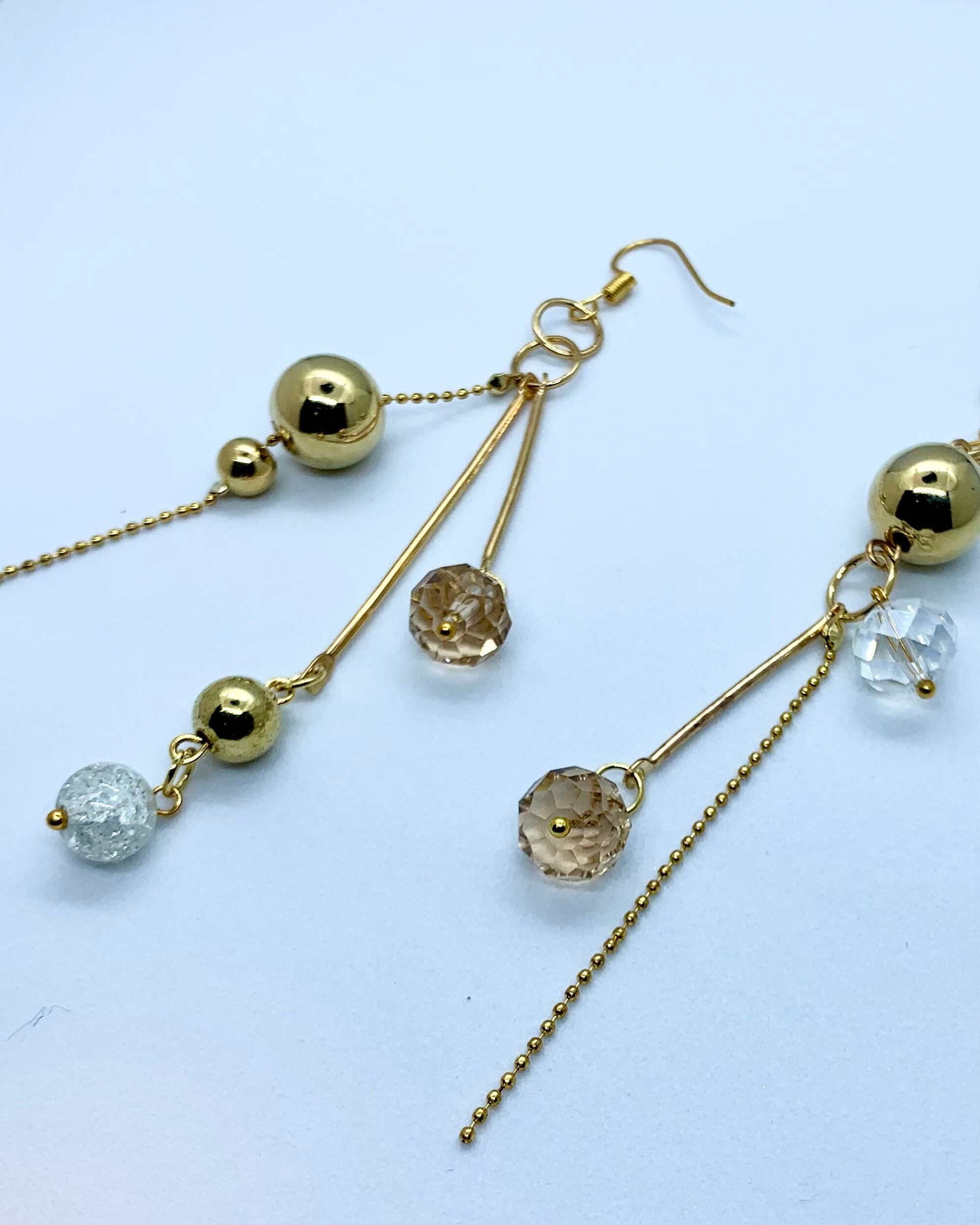 ゴールドのメタルボールが揺れるアシンメトリーなピアス♡
