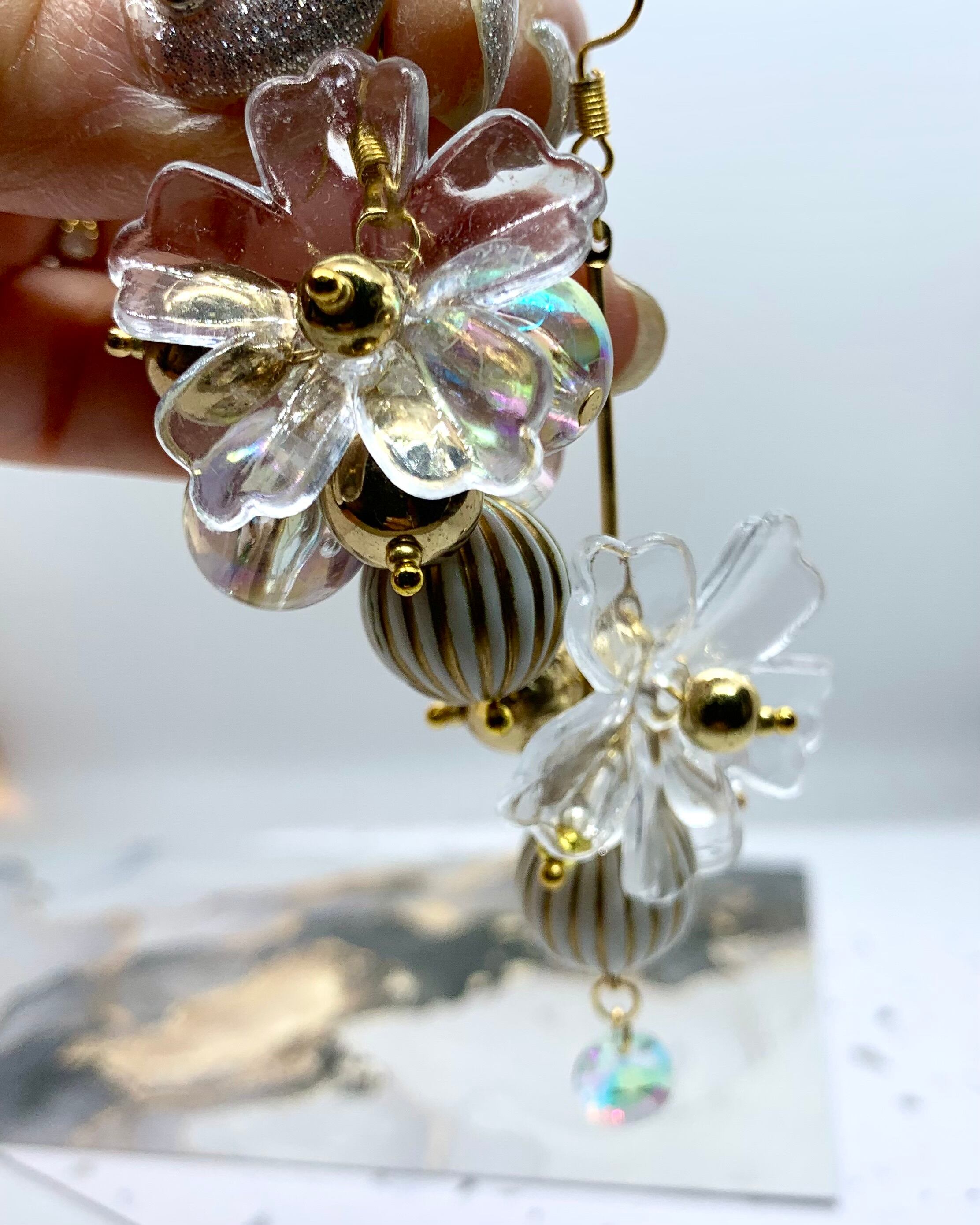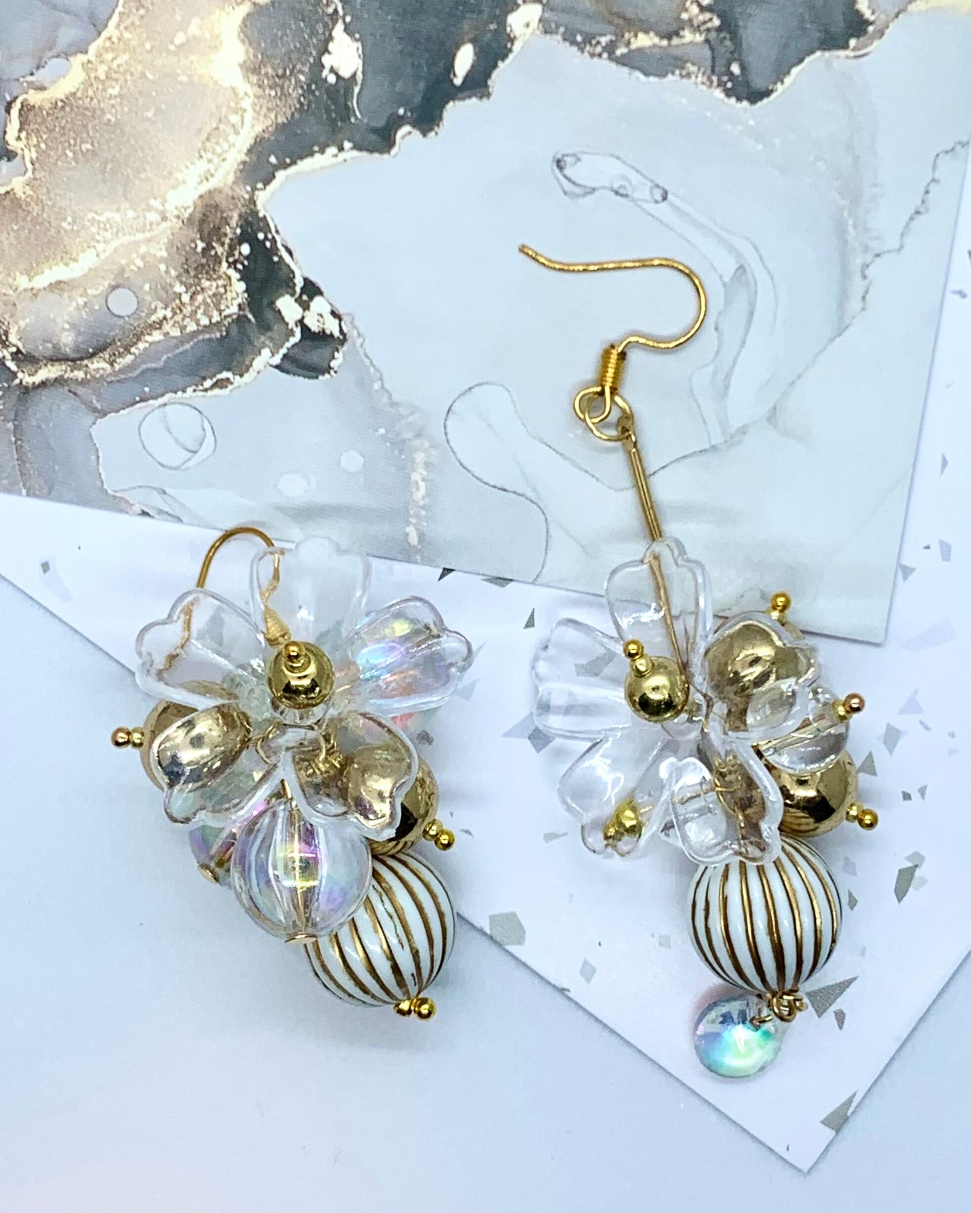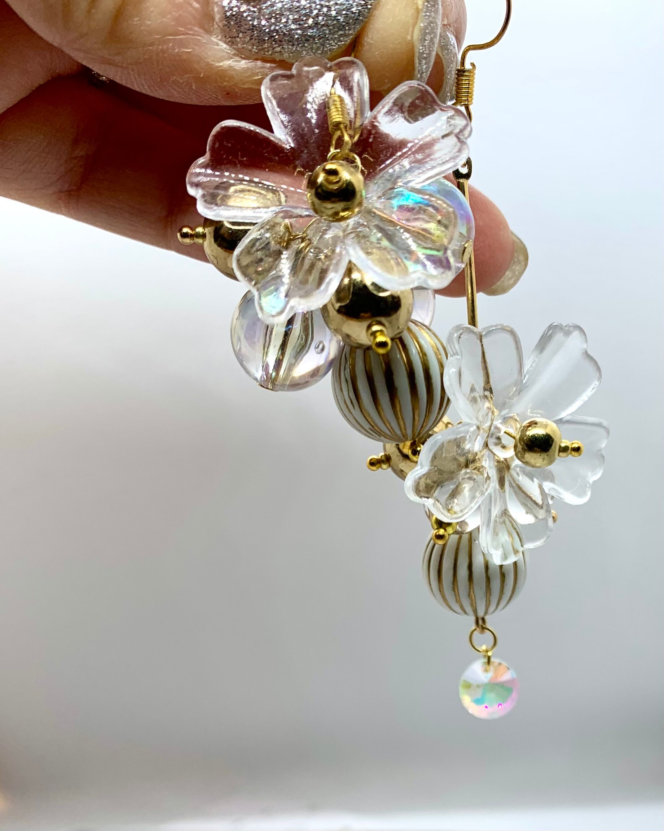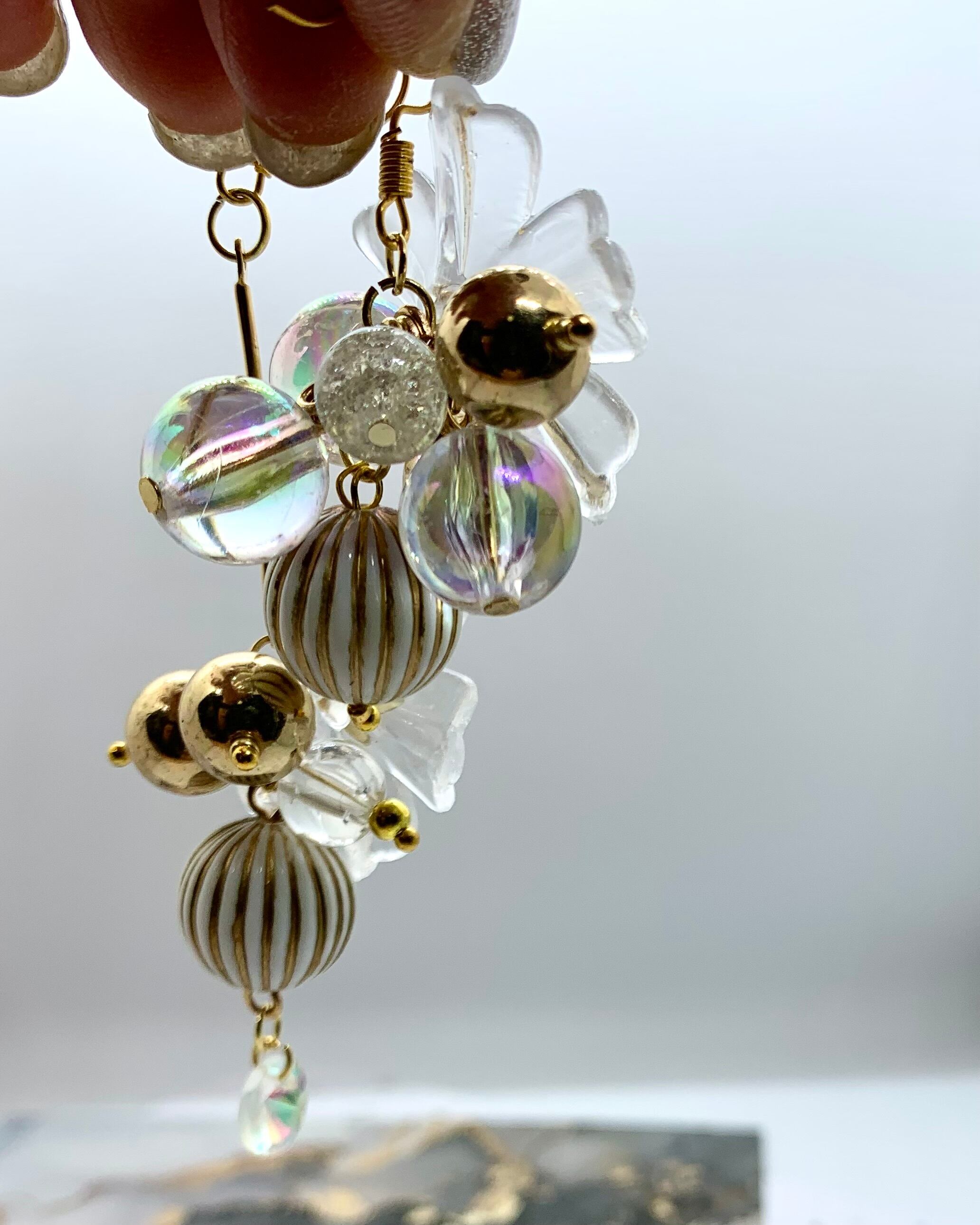 ゴールドやクリアボールをたくさん使った個性的なピアスです。